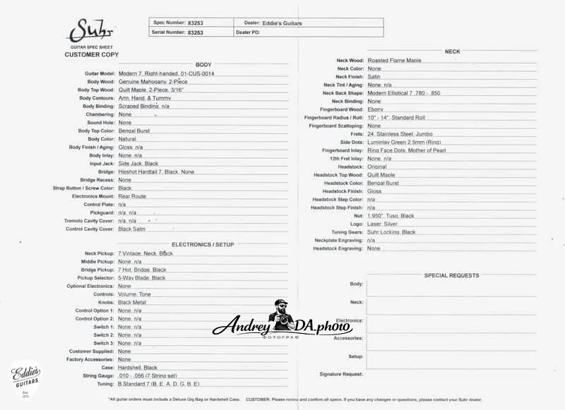 Для получения дополнительной информации о Suhr Modern 7, пожалуйста, свяжитесь с нами.