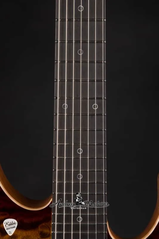 Гриф сам по себе является произведением искусства - шедевр из обожженного кленового дерева с отделкой сатин, которая обеспечивает гладкость и быструю игру, не прилипая под горячими лампами. В сочетании с элегантной накладкой из эбена, этот гриф предлагает непревзойденную удобность в игре с современным эллиптическим профилем 7 (.780" - .850"), который идеально ложится в руку, оставаясь при этом легким и подвижным. Композитный радиус от 10" до 14" и 24 джамбо-ладовые струны из нержавеющей стали обеспечивают низкое и быстрое действие с точными бендерами и шелковисто-гладкими слайдами, а стандартные закругленные края накладки добавляют фирменный комфорт Suhr.