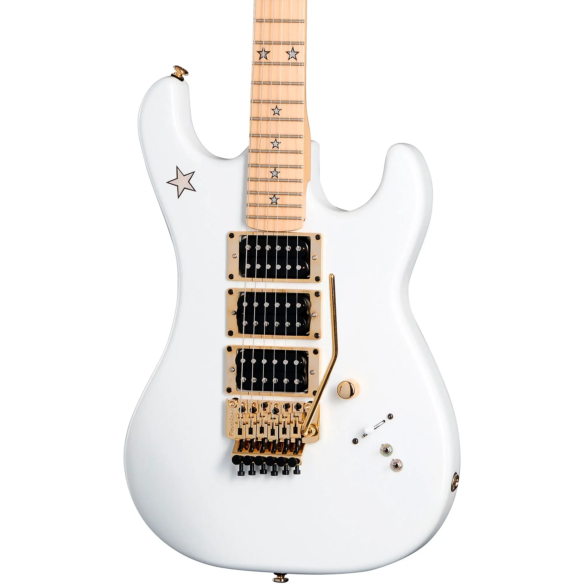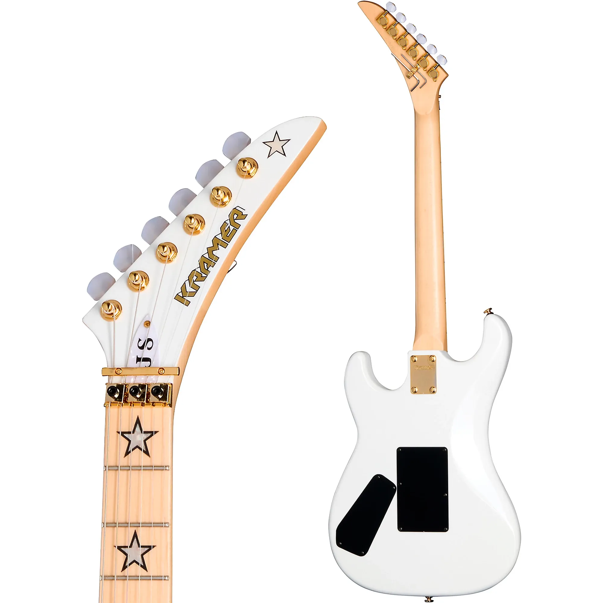 Икона высокопроизводительного хард-рока. Электрогитара Kramer Jersey Star предлагает смелое сочетание высокопроизводительного дизайна и агрессивной эстетики, созданное для исполнителей, требующих от своего инструмента большего. В составе коллекции Kramer's Original эта модель отдает дань уважения своим корням 1980-х годов, одновременно предлагая современные усовершенствования для современных гитаристов. Корпус из ольхи обеспечивает сбалансированную тембровую основу, а трехкомпонентный гриф из клена обеспечивает стабильность и плавность игры. Атласное покрытие и эллиптический профиль грифа в форме буквы C повышают скорость и комфорт, делая эту гитару идеальной для быстрой и четкой игры. Оснащенная кленовым накладкой с лазерной вырезанной звездой из перламутра, Jersey Star так же впечатляет визуально, как и динамично звуково. Эта гитара оснащена системой тремоло серии Floyd Rose 1000 и оснащена тремя хамбакерами Kramer USA Neptune, которая создана для того, чтобы делать что-то с точностью и стилем. Floyd Rose Tremolo для драматичных пикирующих бомб The Floyd Rose 1000 Система тремоло Series на этой гитаре обеспечивает исключительную стабильность настройки, даже при самом агрессивном использовании. В сочетании с фиксирующей гайкой Floyd Rose R2 эта настройка надежно фиксирует струны, предотвращая их проскальзывание и поддерживая интонацию во время интенсивного использования тремоло или тонких вибрато. Независимо от того, экспериментируете ли вы с драматическими изгибами высоты тона или добавляете тонкую текстуру в свои соло, эта система тремоло гарантирует надежный опыт игры. Прочная конструкция обеспечивает сохранение точной настройки, как бы вы ни расширяли границы своей игры. Пикапы Kramer Neptune Humbucker для высокого выхода Гитара Jersey Star оснащена трио американских пикапов Kramer Neptune, разработанных для мощного звука хард-рока с высоким выходом. Они обеспечивают мощный, но при этом универсальный звуковой диапазон, не жертвуя ясностью и четкостью, что делает их идеальными для всего: от огненных соло до плотных ритмических партий. Индивидуальные переключатели раскрытия катушки для бриджевого и среднего пикапа.обеспечивают дополнительную тональную гибкость, позволяя музыкантам получать чистые звучания с сингловых датчиков наряду с мощным звуком хамбакеров. Пятипозиционный переключатель и главный регулятор громкости обеспечивают легкий доступ к широкому спектру звуков, гарантируя, что каждая нота будет насыщенной и четкой. Премиальная шейка и гриф из клена для скорости Трехсекционный кленовый гриф этой гитары создан для скорости, с эллиптическим C-образным профилем, который обеспечивает удобный хват как для скоростной игры, так и для аккордов. Его сатиновая отделка снижает трение, позволяя руке легко скользить по грифу. Гриф из клена оснащен 22 джамбо-ладовыми, предоставляя достаточно места для выразительных бендов и точной артикуляции нот. Лазерная инкрустация из перламутровых звезд не только добавляет элегантности, но и делает навигацию по грифу интуитивной под сценическим светом. Такое сочетание премиальных материалов и точного дизайна обеспечивает плавную игру, идеально подходящую для сложных соло и быстрого рифообразного исполнения. Прочная конструкция с эффектными деталями От корпуса из ольхи до позолоченной фурнитуры, гитара Jersey Star создана, чтобы выдерживать 