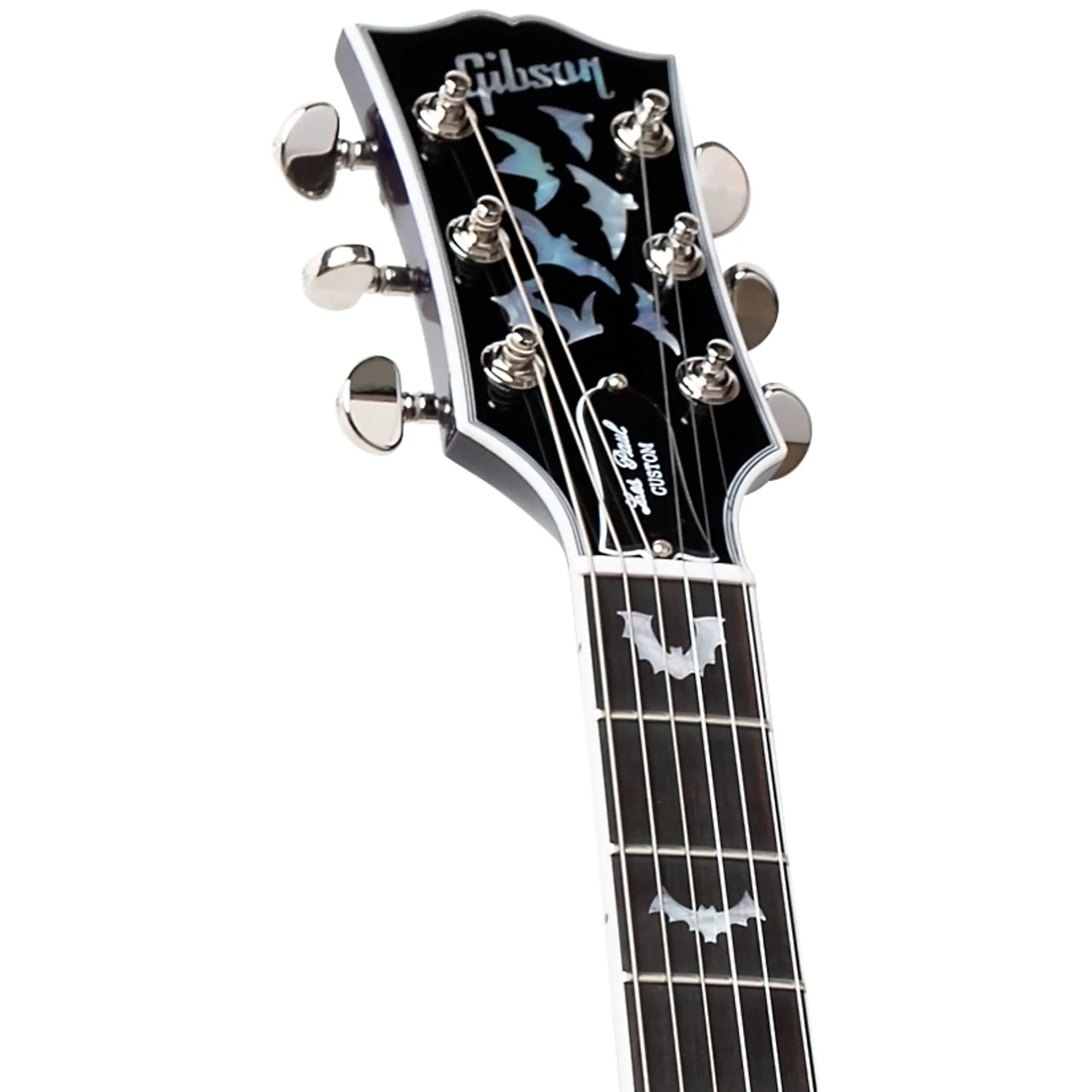 Долгожданное возвращение легендарного лимитированного Les Paul Studio. Лишь немногие современные релизы Gibson вызвали такой уровень восхищения - и одержимости - как оригинальная модель 2019 года Les Paul Custom Bats in Flight. Желаемая коллекционерами и почти невозможная для приобретения, ее краткое появление только усилило мистику. Теперь легенда возвращается. Воссозданная в сотрудничестве между Guitar Center и Gibson Custom Shop, Les Paul Custom Bats in Flight возвращает эту темную элегантность с драматическим расширением в четыре впечатляющих отделки - каждая с тщательно подобранной верхней декой из кленового шпона 4A в полном абалоновом оканте. Гриф из эбенового дерева оживает с мерцающими перламутровыми вставками в виде летучих мышей, продолжающимися на головке грифа, подчеркивая неповторимую индивидуальность этого инструмента. Длинный шейный блок из мага может служить основой для премиальной удобности игры, в то время как звукосниматели Custom Shop 490R и 498T раскрывают характерную мощь Les Paul Custom. Эксклюзивная, усовершенствованная и созданная дляЭто ограниченное возрождение серии Bats in Flight демонстрирует одно: наследие Bats in Flight только укрепилось. Верх из клена 4A с огненной текстурой и расширенными вариантами отделки Последний выпуск Bats in Flight поднимает визуальные стандарты с премиальным верхом из клена 4A, выбранного за его выраженный рисунок и глубину. Каждое из четырех глянцевых покрытий - Dark Orange Burst, Dark Red Burst, Dark Purple Burst и Dark Blue Burst - создает яркий контраст с темными элементами гитары, усиливая драматизм древесины. Корпус из цельного махагона формирует неповторимую резонансность и средние частоты, которые определяют Les Paul Custom, а полное абалоновое окантование подчеркивает верх удивительным мерцающим блеском. Великолепный с любого ракурса, этот инструмент воплощает редкую красоту, которой ожидают от Gibson Custom Shop. Махагоновая шейка с длинной tenon и накладкой из эбена с инкрустациями летучей мыши из перламутра Махагоновая шейка с длинным tenon обеспечивает исключительную стабильность, улучшенную сустейн и эффективную передачу энергии между шея и корпус. Гладкая накладка из эбена обеспечивает быстрое и точное ощущение под пальцами, а радиус 12" и средне-джамбо ладовые порожки создают идеальный баланс для выразительных бендов и четкой фразировки. Элегантная окантовка обрамляет фирменные мозаичные вставки из перламутра Bats in Flight на грифе, превращая его в центральный элемент, притягивающий внимание. От головки до пятки каждая деталь рассказывает историю: премиальное мастерство встречается с готической изысканностью. Сэт humbucker’ов Custom Shop 490R и 498T для смелого звука Les Paul Обновленный для этой модели набор электроники включает пару humbucker’ов Custom Shop 490R и 498T, сочетая выразительное тепло с современной агрессией. 490R на грифе обеспечивает плавное, певучее сустейн и округлые низы, а 498T в бриджевой позиции дает повышенную выходную мощность, плотный низ и четкий средний диапазон. С независимыми регуляторами громкости и тона, а также трехпозиционным переключателем, этот Les Paul Custom без проблем адаптируется от атмосферных чистых звучаний до высоко-гейновой театральности. Еезвук, столь же смелый, как и его внешний вид. Знаковые летучие мыши в полете: стиль и премиальная фурнитура Gibson Тематика летучих мышей в полете проходит через каждую премиальную деталь, от облицовочной накладки головки грифа 