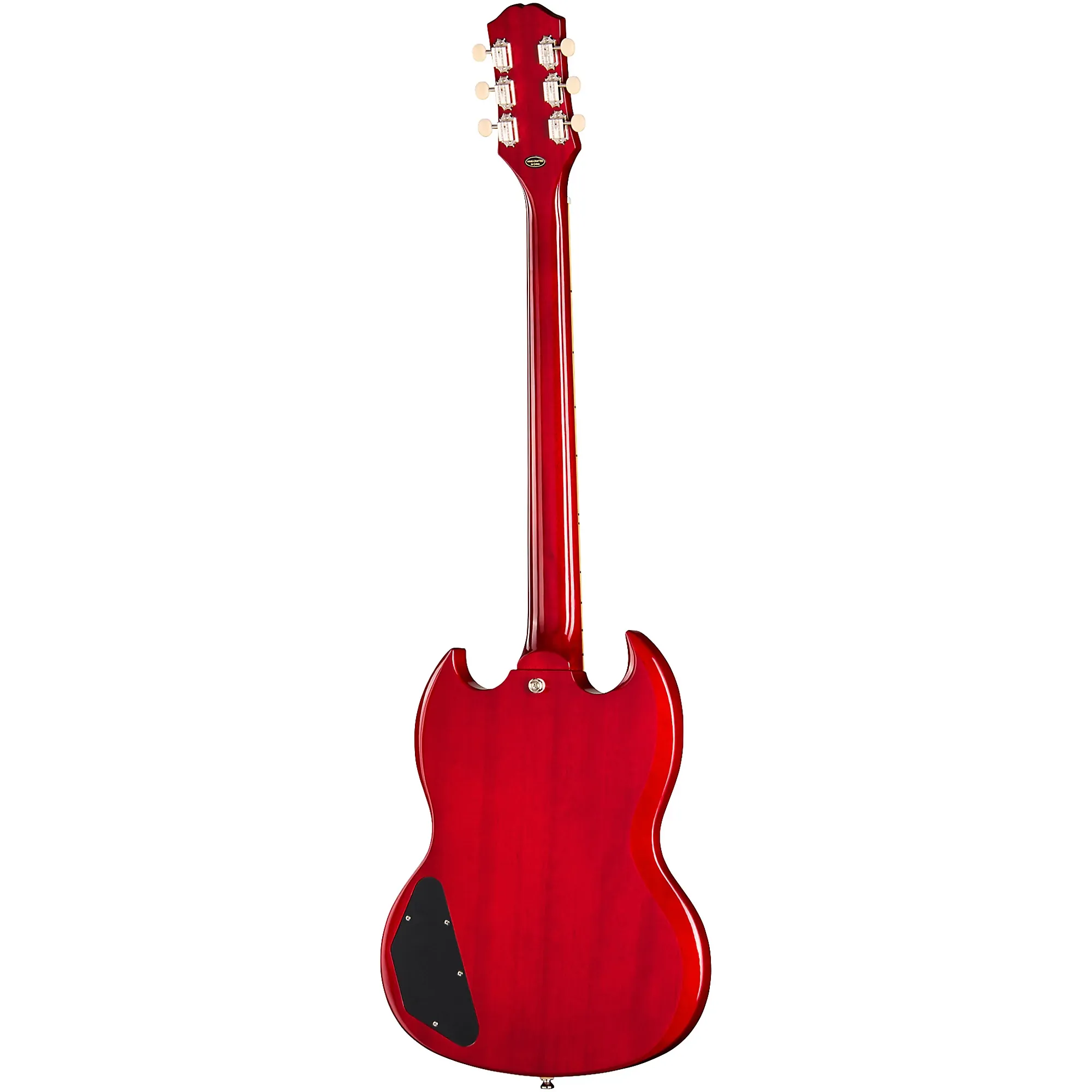 Электрогитара SG P-90 с резким средним звучанием. Электрогитара Epiphone SG Special P-90 передает энергию и остроту дизайна твердых гитар начала 60-х годов с прямым, ориентированным на музыканта ощущением. Являясь частью коллекции Epiphone Inspired by Gibson, эта модель с двойным вырезом сочетает легкое тело из красного дерева с удобной для быстрого игры грифом 60-х SlimTaper, который обеспечивает легкий доступ к верхним ладам и комфорт при длительных сессиях. В основе гитары два звукоснимателя Epiphone P-90 PRO Soapbar обеспечивают яркое среднее звучание, отзывчивость на прикосновение и чистоту, которые помогли создать репутацию SG Special. Завершает конструкцию компенсированный задний бридж, обеспечивающий стабильную интонацию и звонкое сустейн. Звукосниматели P-90 PRO Soapbar формируют неповторимое звучание SG Special Сочетание пары звукоснимателей Epiphone P-90 PRO Soapbar создает узнаваемый звук SG Special. Эти сингл-койл звукосниматели подчеркивают сильное среднее звучание, чистые высокие и быстрый отклик, ясно реагируя на изменения динамики игры и регулировки громкости.С индивидуальными регуляторами громкости и тона для каждого датчика, музыканты могут плавно переходить от звонких чистых звуков к грубому овердрайву, сохраняя при этом четкость и артикуляцию нот. Мост Lightning Bar Wraparound Обеспечивает Сустанс и Настройку Компенсированный мост Lightning Bar закрепляет струны непосредственно на корпусе из красного дерева, способствуя эффективной передаче вибрации для сильного сустанса и четкой интонации. Этот простой дизайн позволяет сохранять стабильность настройки при изгибах и агрессивной игре, а также облегчает замену струн. Прямое управление стимулирует выразительную игру Расположение элементов управления соответствует безизысканному подходу SG Special, с индивидуальными регуляторами громкости и тона для каждого датчика и трехпозиционным переключателем. Черные кнопки в форме цилиндра с серебристыми отражателями легко схватывать во время игры, что позволяет быстро настраивать звук, не прерывая музыкальный поток. В итоге получается система, которая вознаграждает чувствительность и намерение, а не сложное переключение. Корпус из красного дерева сочетает комфорт и устойчивость Прочный корпус из красного дерева обеспечивает естественную резонансность и легкость, а гриф из красного дерева с профилем 60-х SlimTaper поддерживает быструю смену позиций на грифе. Окантовка грифовой накладки из палисандра с 22 средне-джамбо ладов обеспечивает гладкую игровую поверхность. Колковый узел Graph Tech в сочетании с тюнерами Epiphone Deluxe с слоновой костью помогают поддерживать стабильность строя во время регулярной практики и выступлений. Классическая платформа SG с сосредоточенной простотой Epiphone SG Special P-90 идеально подходит для музыкантов, которые ценят оперативность, чистоту звука и классический дизайн. Сочетание звучания P-90, быстрого грифа и надежной аппаратуры делает ее естественным выбором для рока, блюза, панка и смежных стилей. Как часть коллекции Inspired by Gibson, она связывает легендарный дизайн с доступностью, удобством игры и практическим исполнением. В конце концов, в комплект входит премиальный чехол для переноски, чтобы вы могли легко перемещаться с репетиции на выступление.или сцена. Особенности Корпус из махагони с двойным вырезом обеспечивает полный доступ к грифу для технических проходов Профи