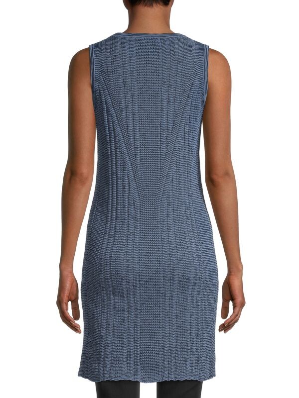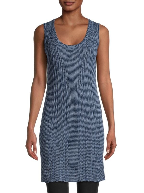 Непринужденное и привлекательное платье без рукавов с характерным вязаным узором.