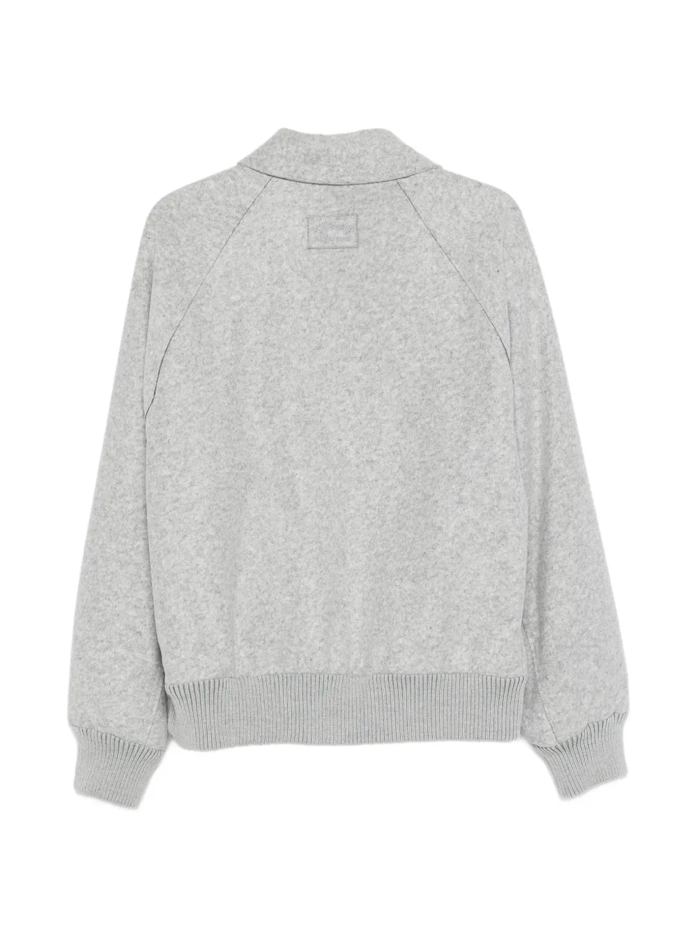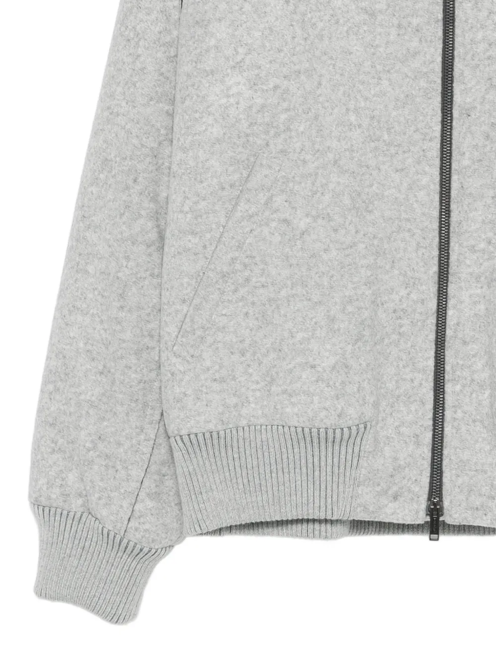 Серый цвет, ребристый подол, застежка на молнии, классический воротник, длинные рукава, ребристые манжеты