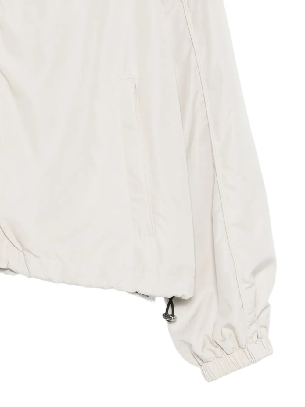 Бежевый цвет, логотип, застежка-молния спереди, длинные рукава, кулиска по низу, эластичные манжеты