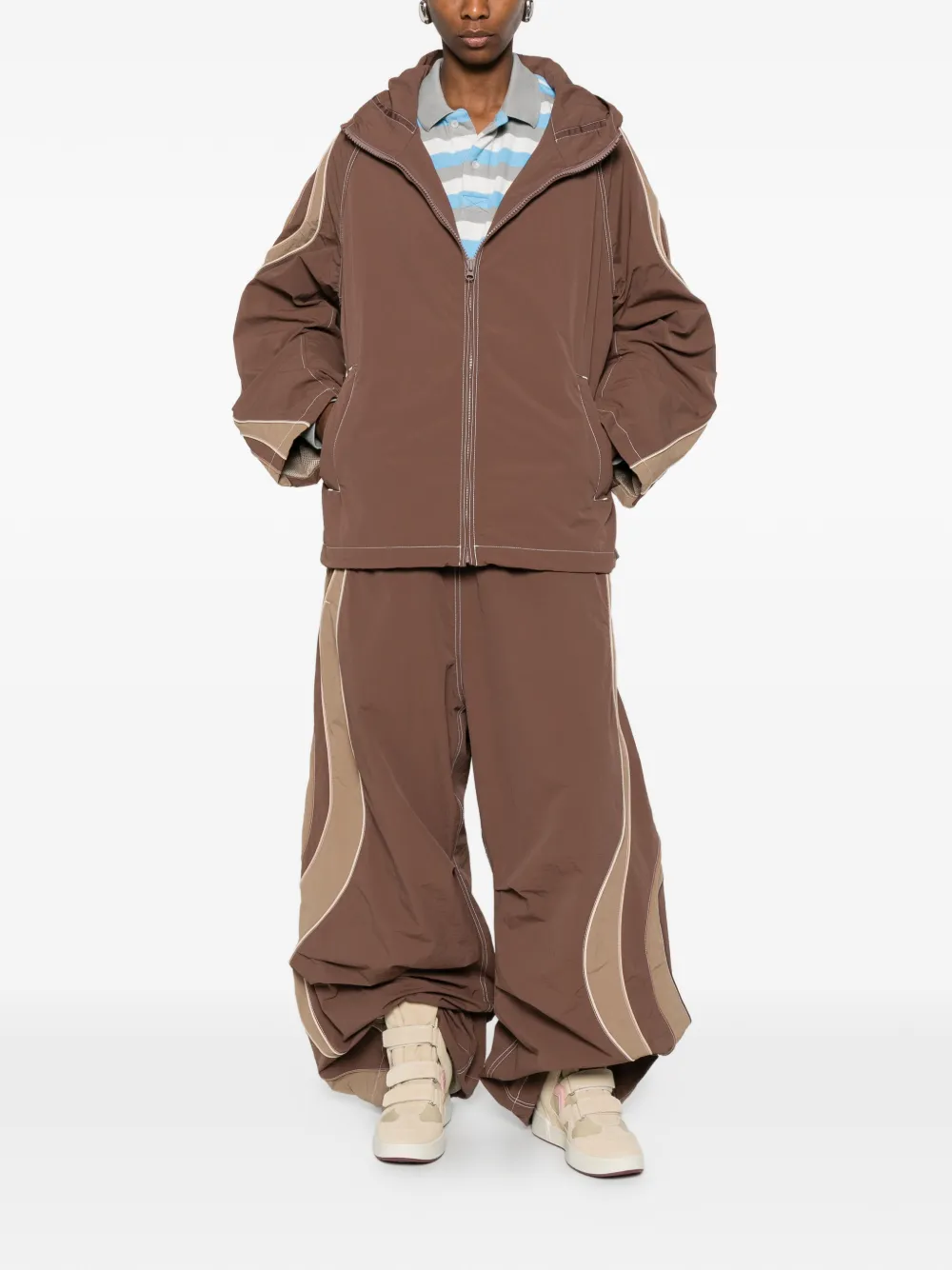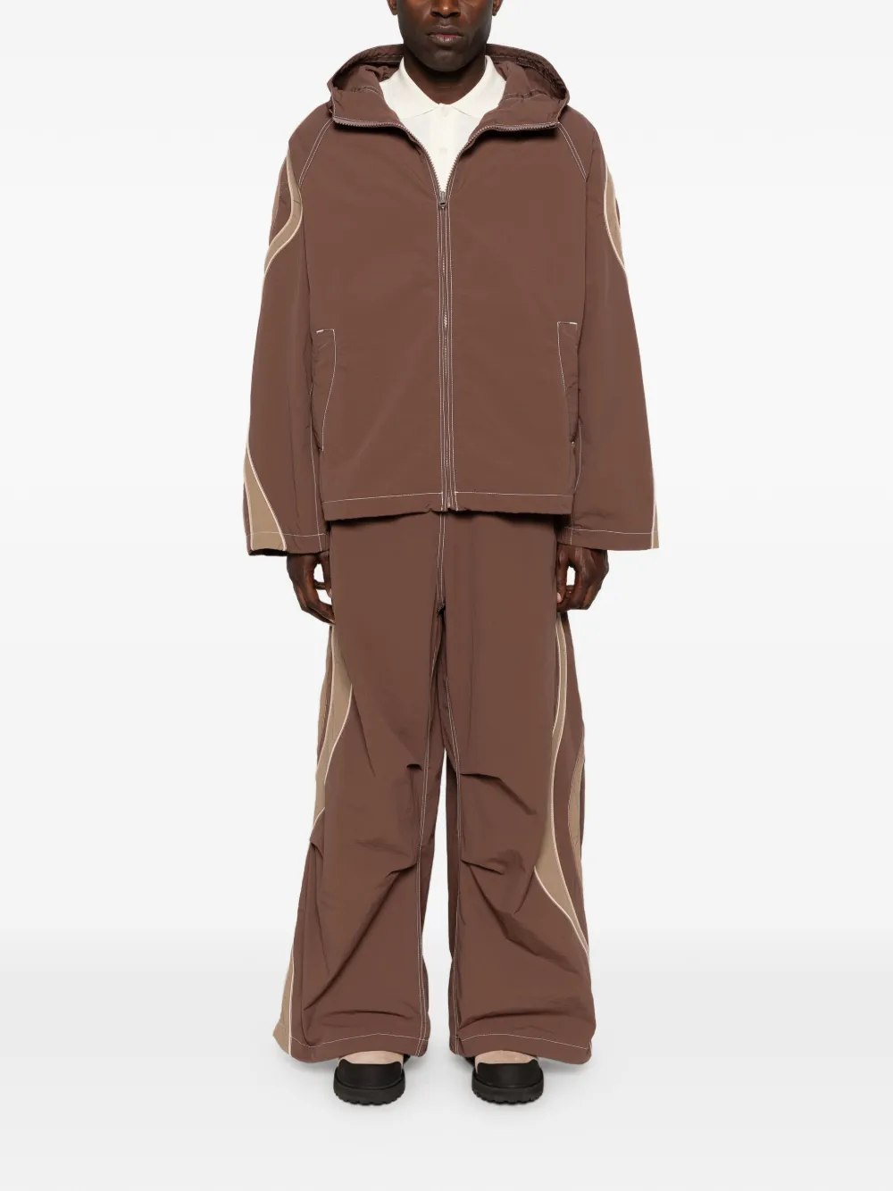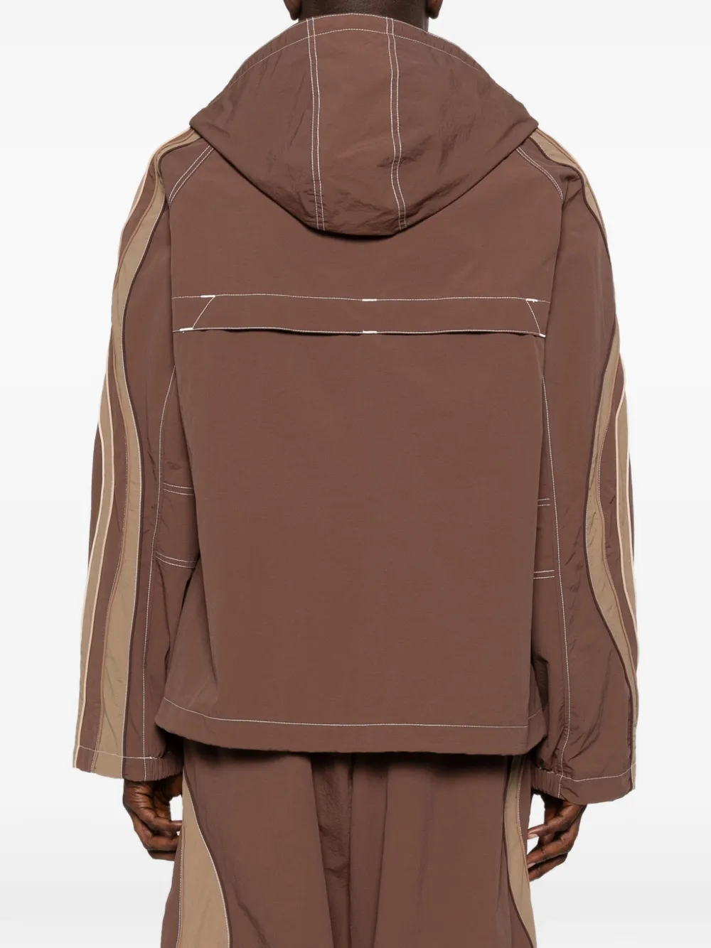 Коричневая худи с панельным дизайном, застежкой-молнией и прорезными карманами, тональная строчка