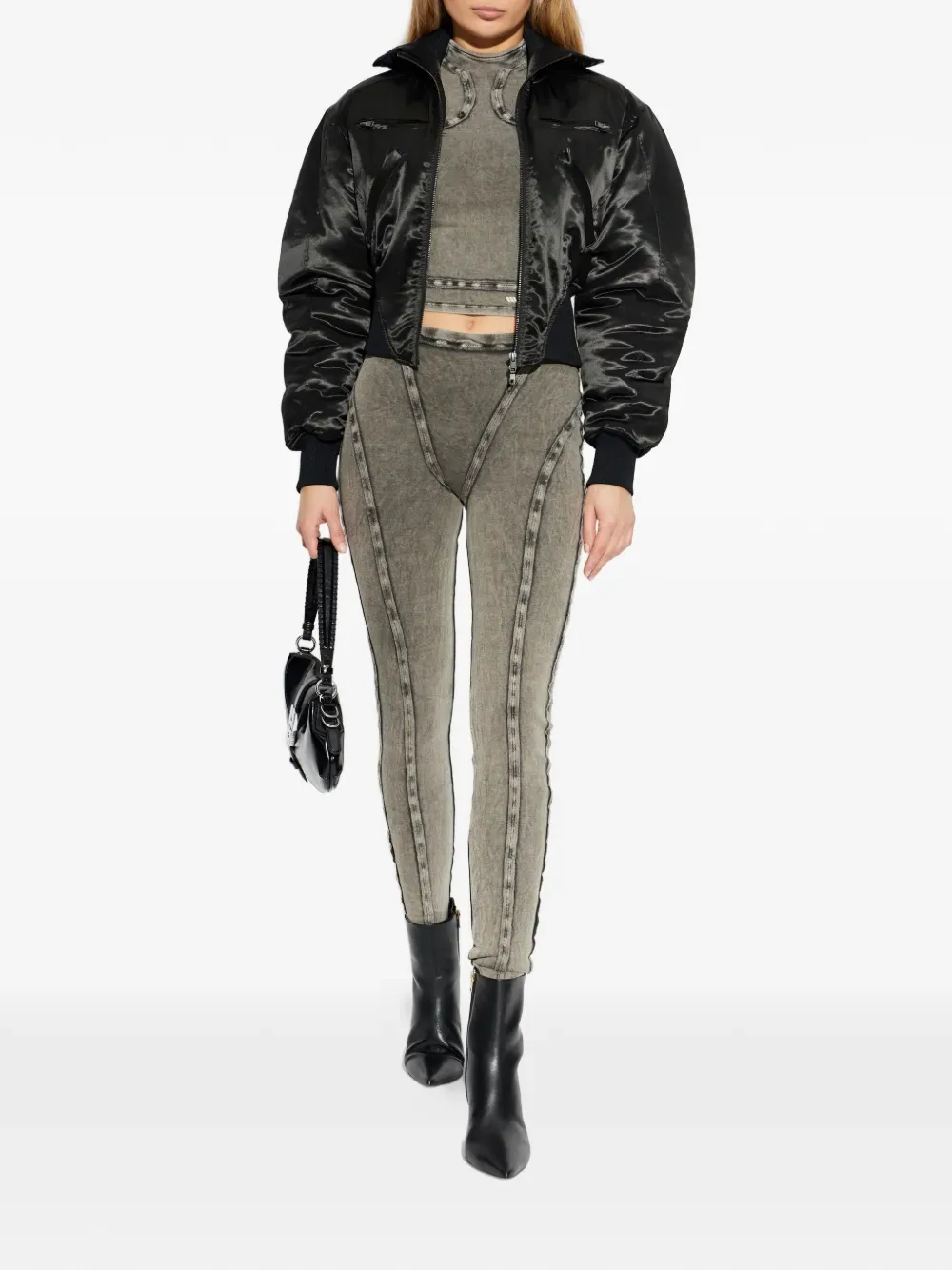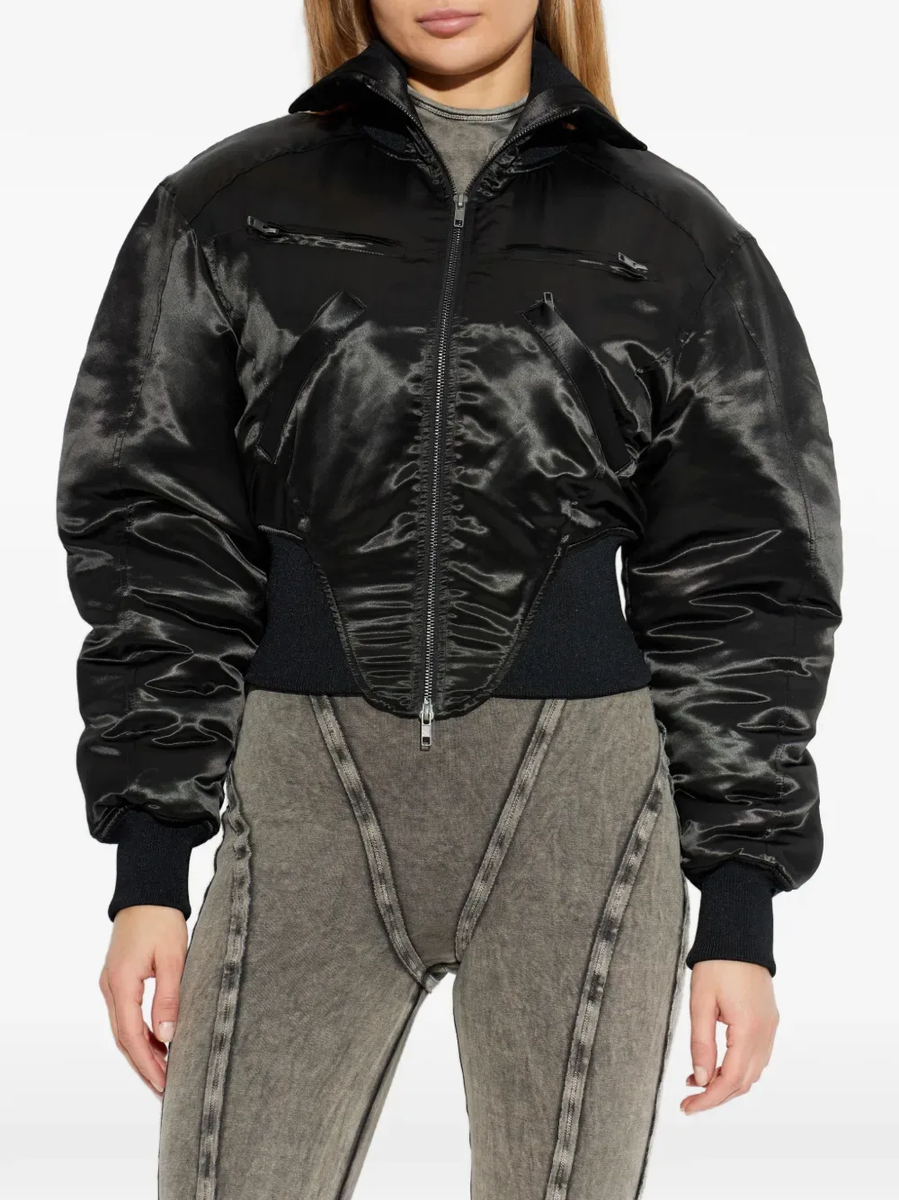 Черная, застежка-молния спереди, ребристый подол, прорезные карманы на молнии, ребристые манжеты