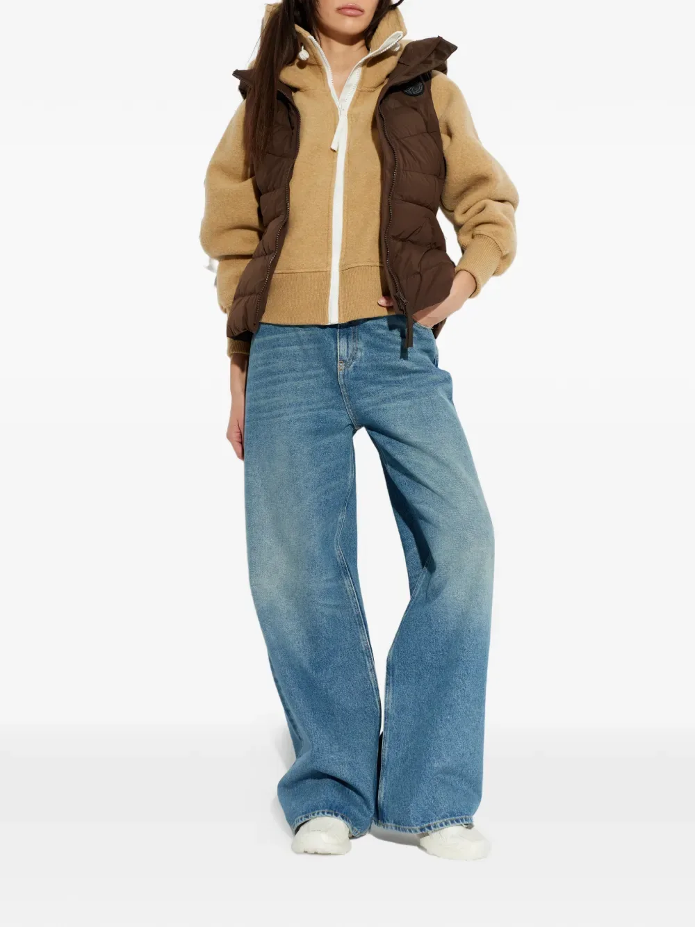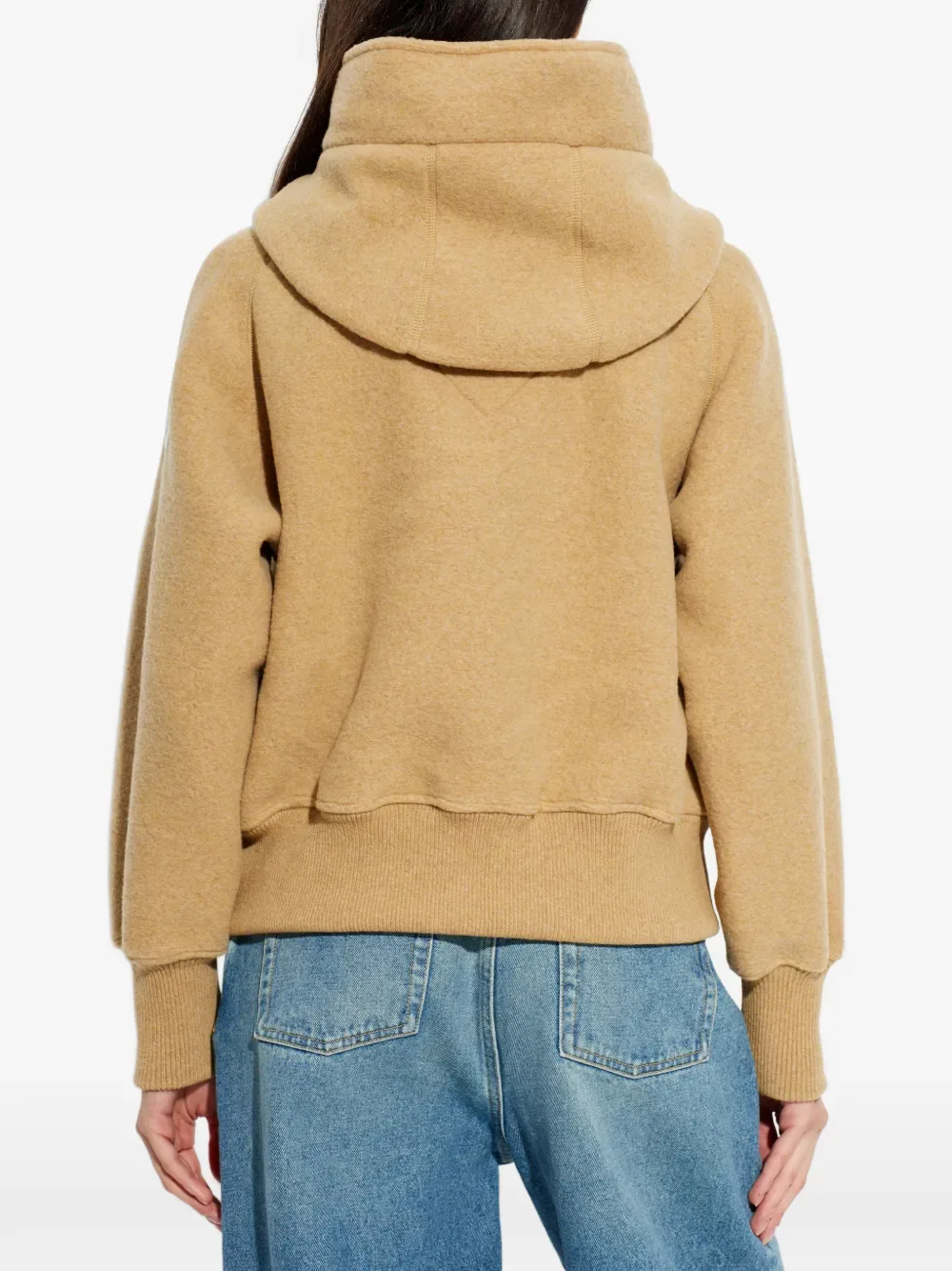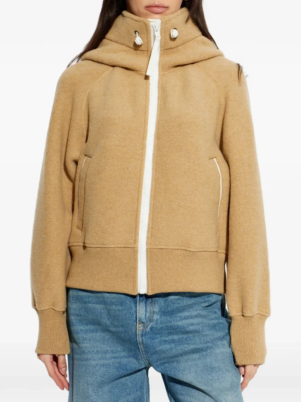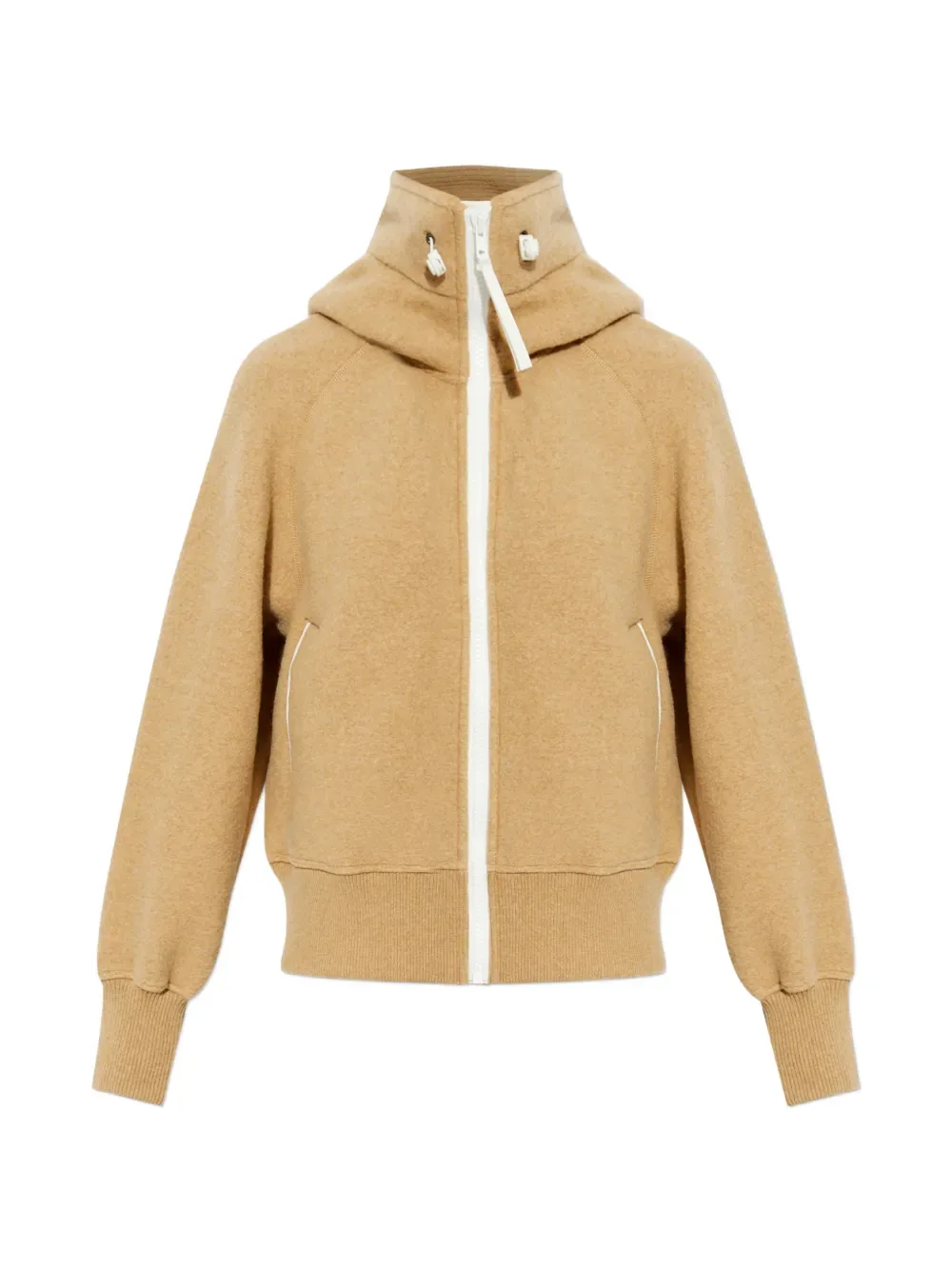 Бежевый капюшон на молнии, застежка-молния, ребристый низ, ребристые манжеты, прорезные карманы