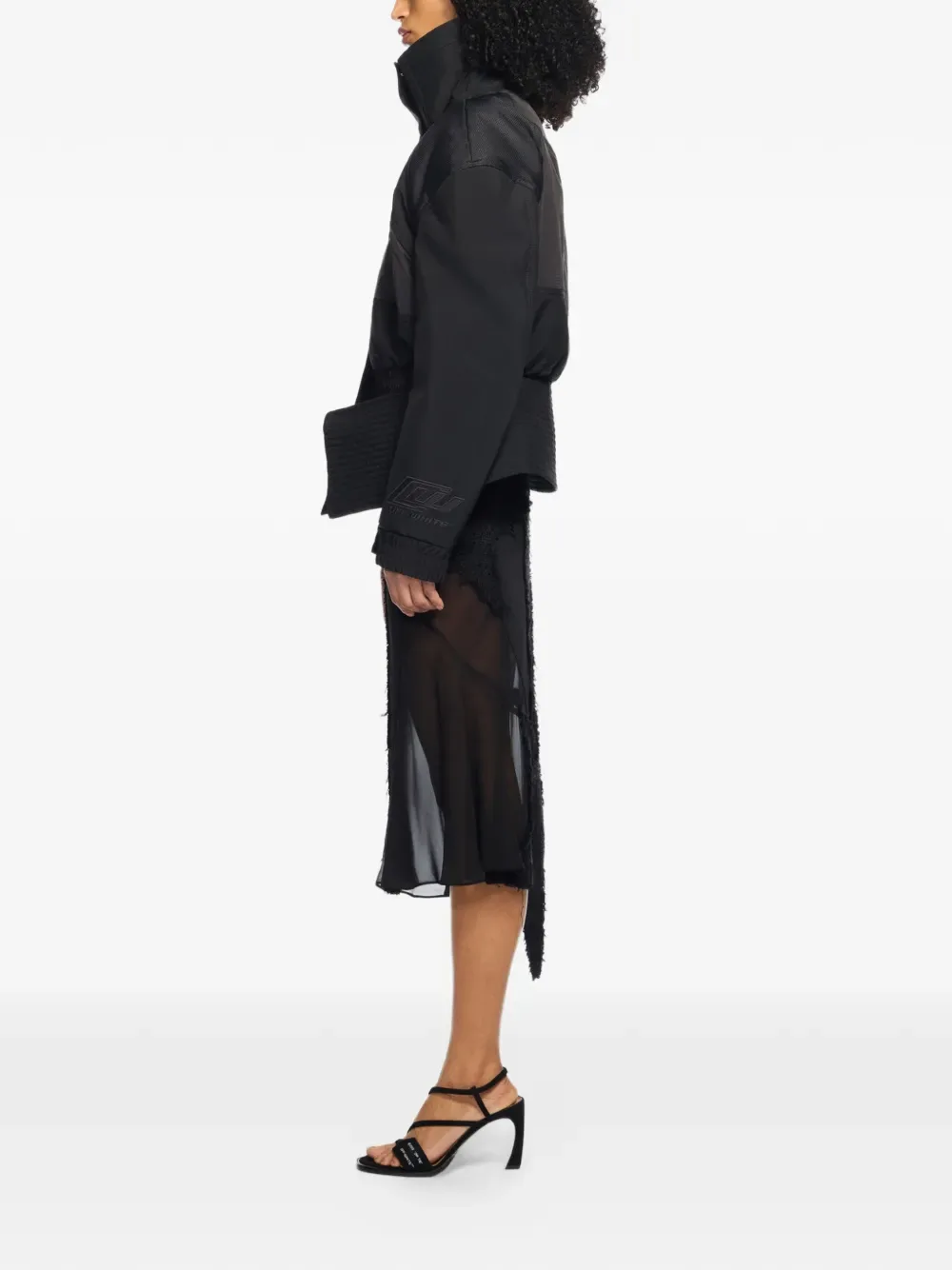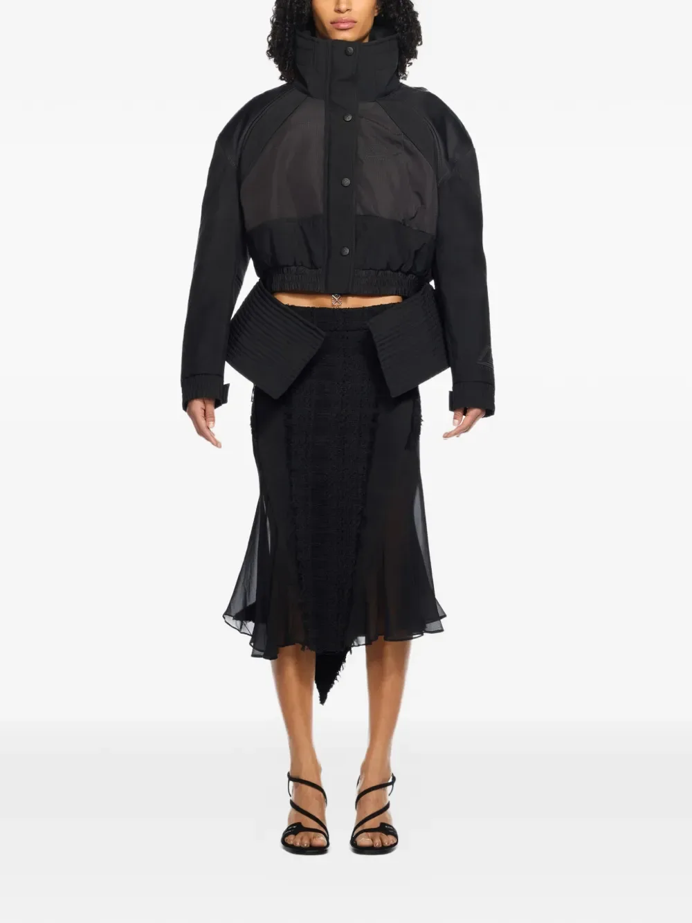 Черная куртка с высоким воротником, застежкой на кнопки, рукавами реглан и эластичным подолом