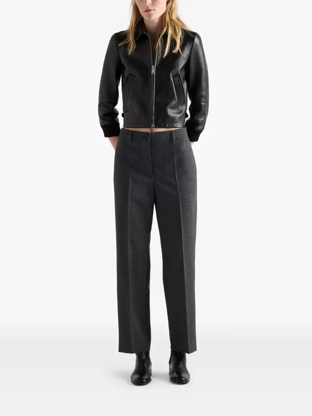 Кожаная блузон-куртка Prada, черный