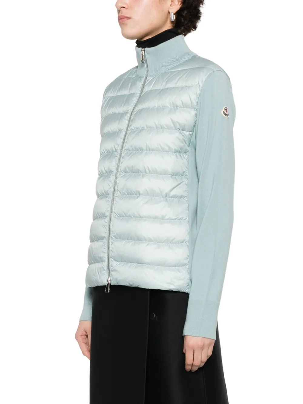 Светло-голубая куртка с подкладкой, застежкой-молнией спереди, длинными рукавами и нашивкой с логотипом