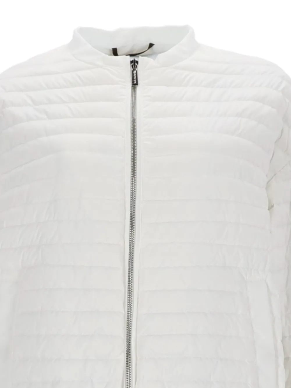 Белая стеганая куртка на молнии, с круглым вырезом, длинными рукавами и фронтальными карманами