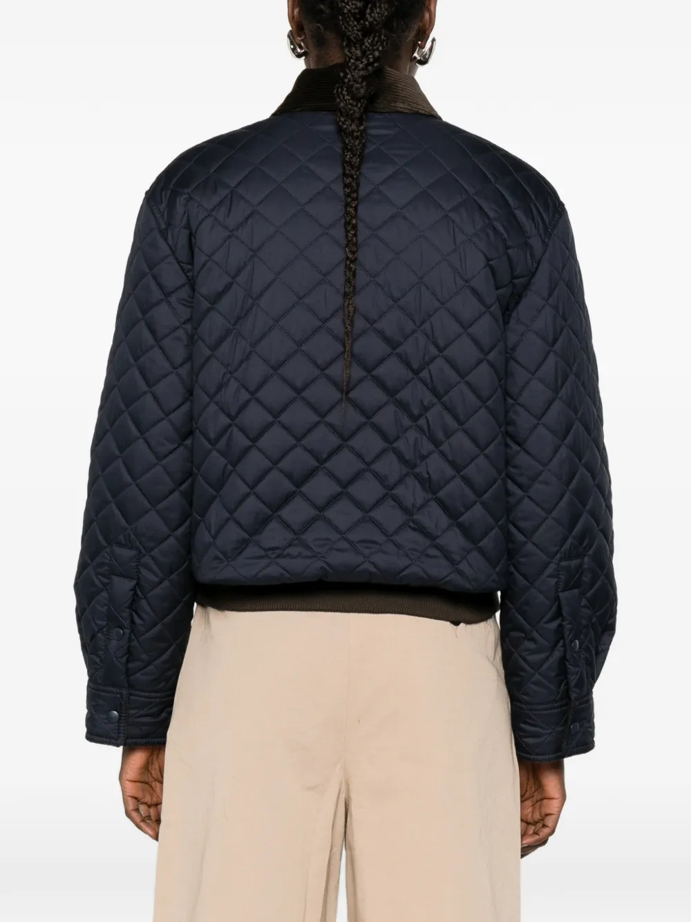 Синие кожаные детали, стеганая (куртка), застежка-молния, вельветовый воротник, эластичный низ