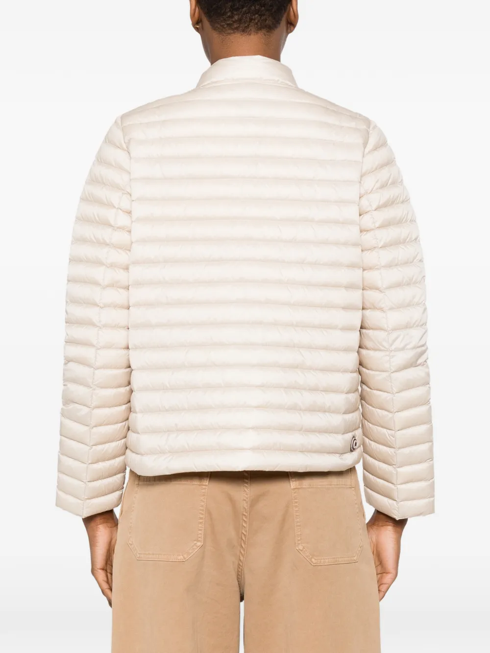 Песочного цвета стеганая куртка на молнии с круглым вырезом и прорезными карманами