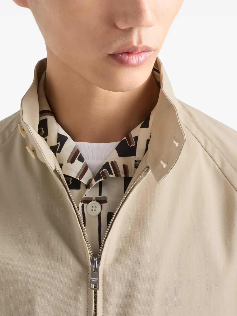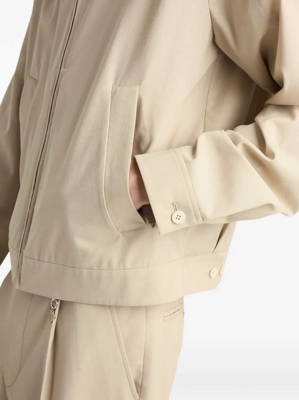 - Прямой крой - Воротник-стойка с ремешком и пуговицей - Рукав реглан - Застежка на молнию - Широкие прорезные карманы - Манжеты на пуговицах - Обычная линия плеч - Прямой низ - Без подкладки - Фирменный треугольный логотип из ткани и портновская нашивка с логотипом - Хлопок