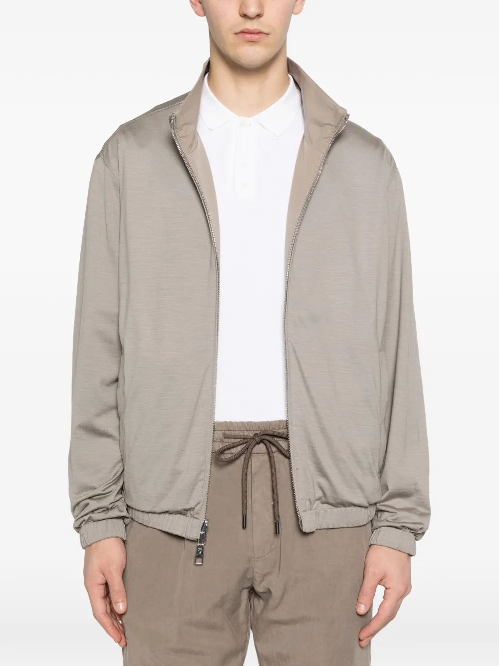 Бежевый цвет, застежка на молнии, эластичный нижний край, длинные рукава, боковые прорезные карманы
