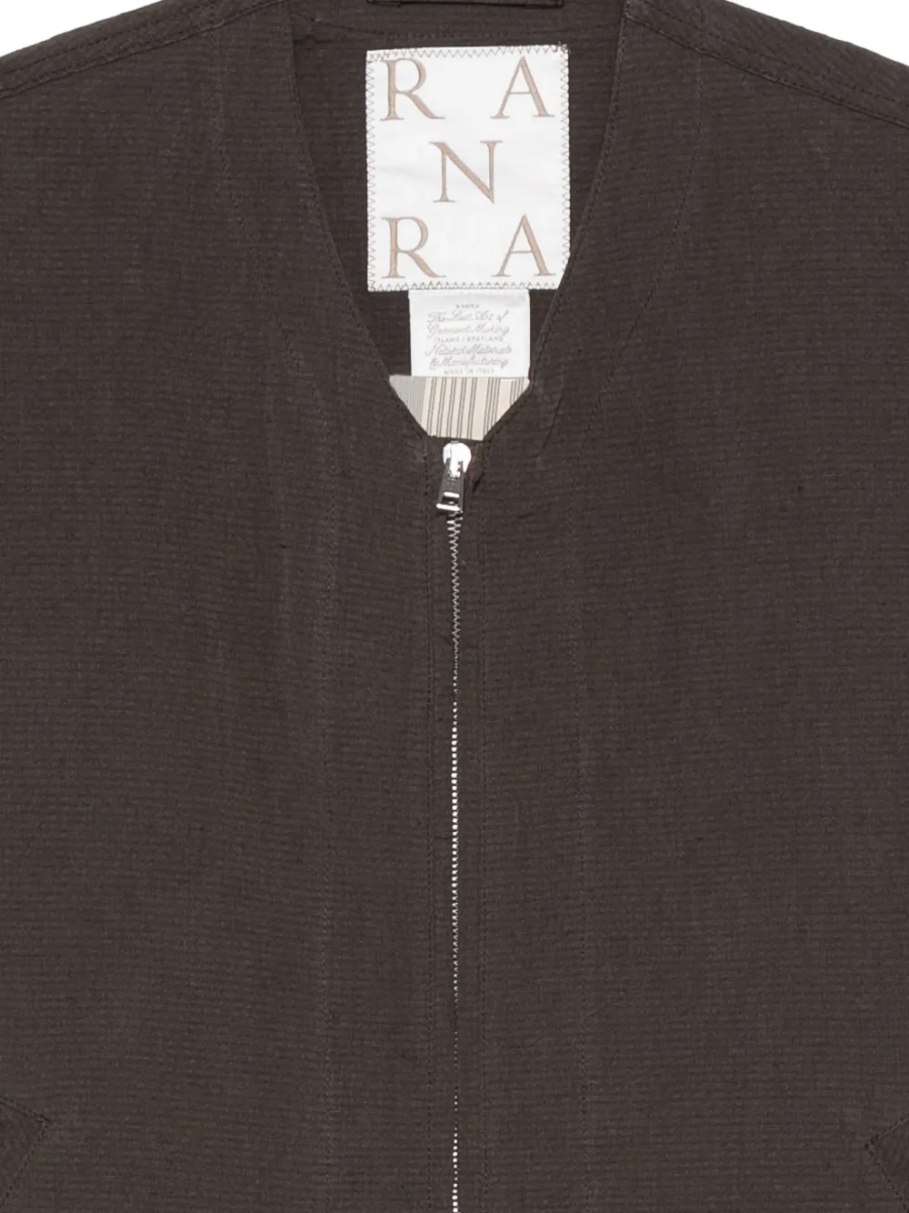 Коричневый топ с застежкой-молнией, V-образным вырезом, передними карманами и декоративной строчкой