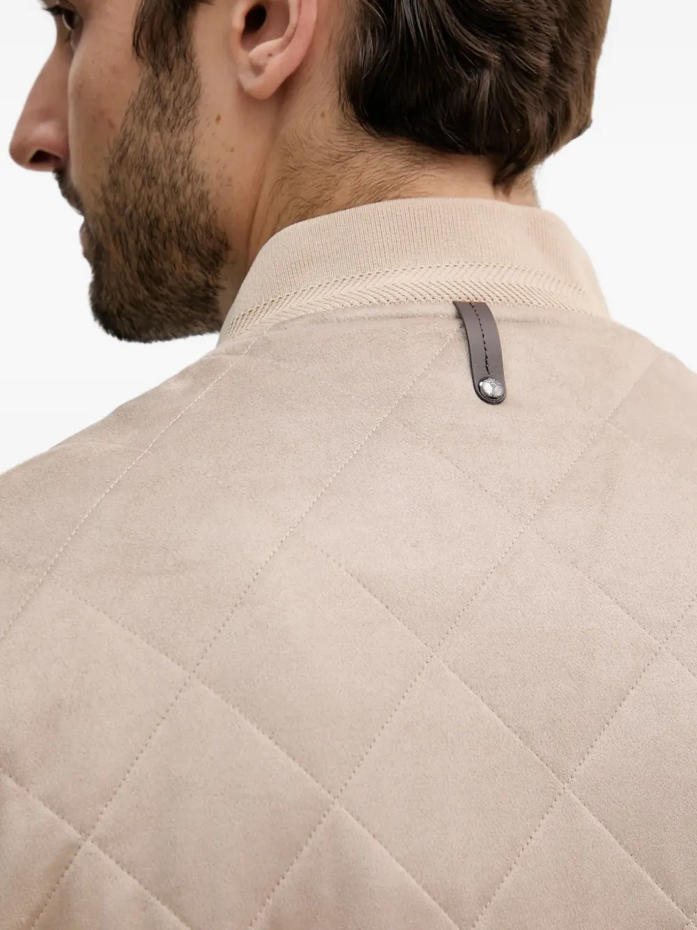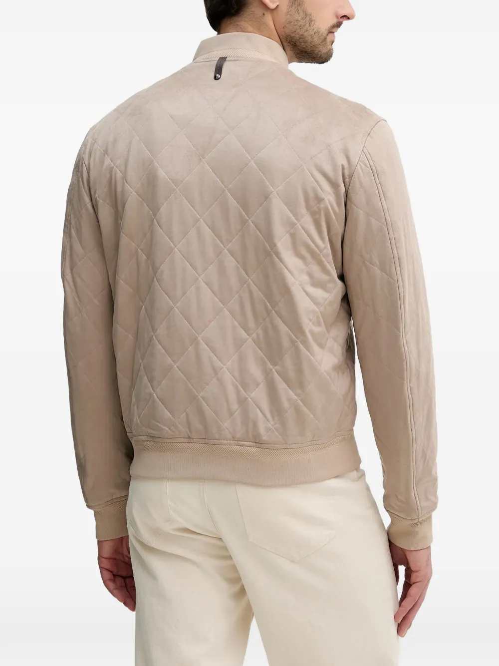 Бежевый стеганый перед, застежка-молния спереди, ребристый край, ребристые манжеты
