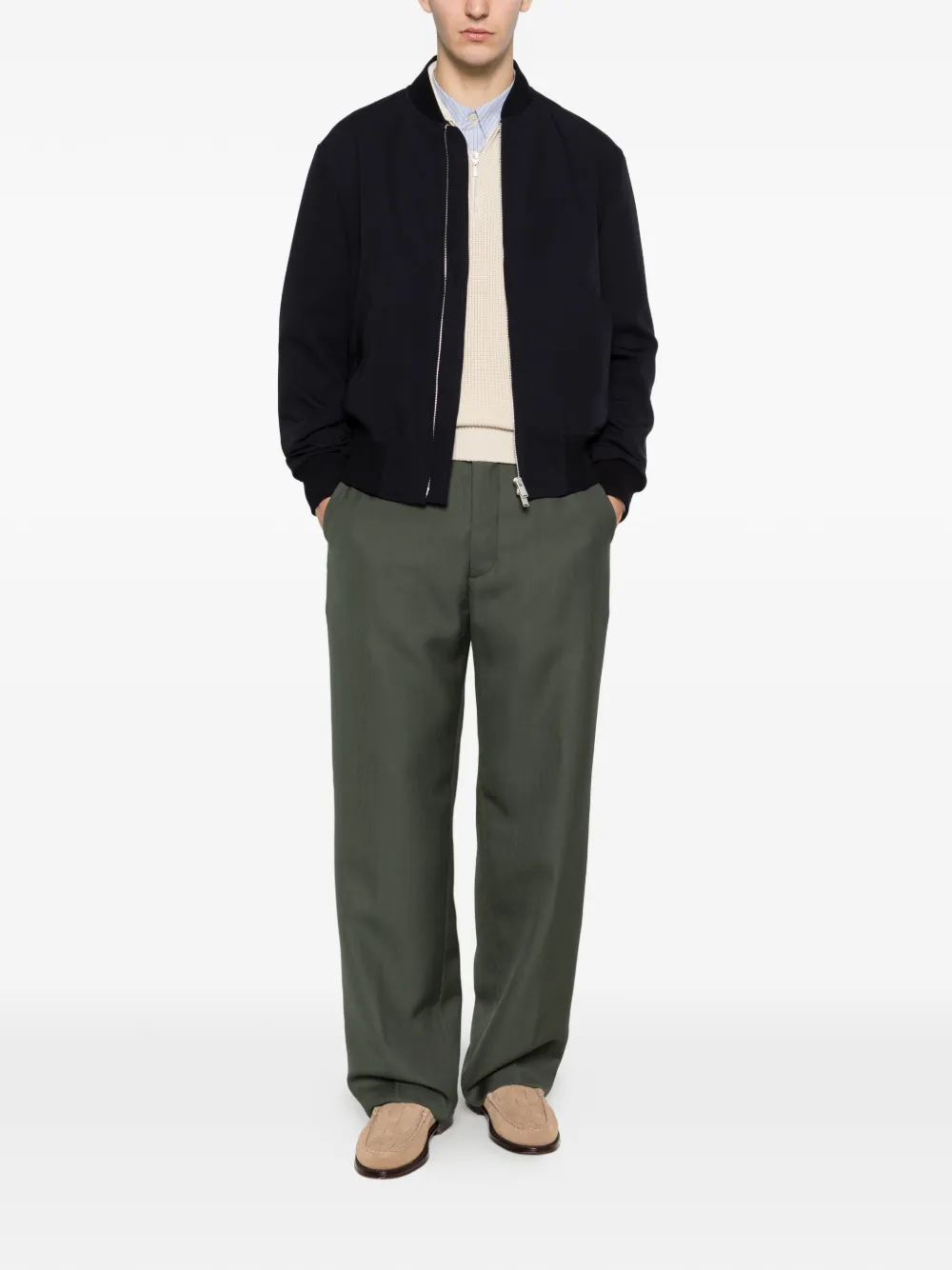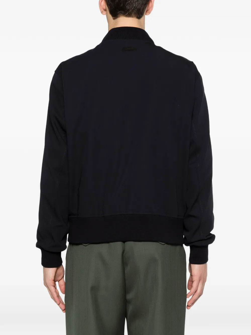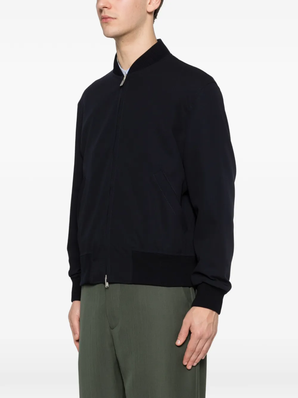 Темно-синий, ребристые края, застежка-молния, прорезные карманы, длинные рукава