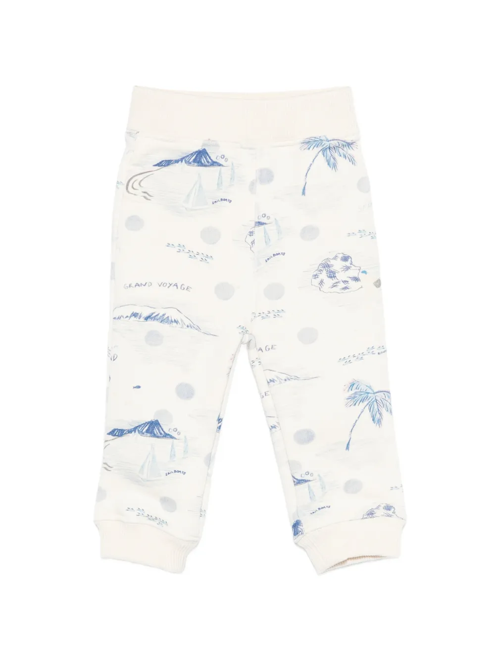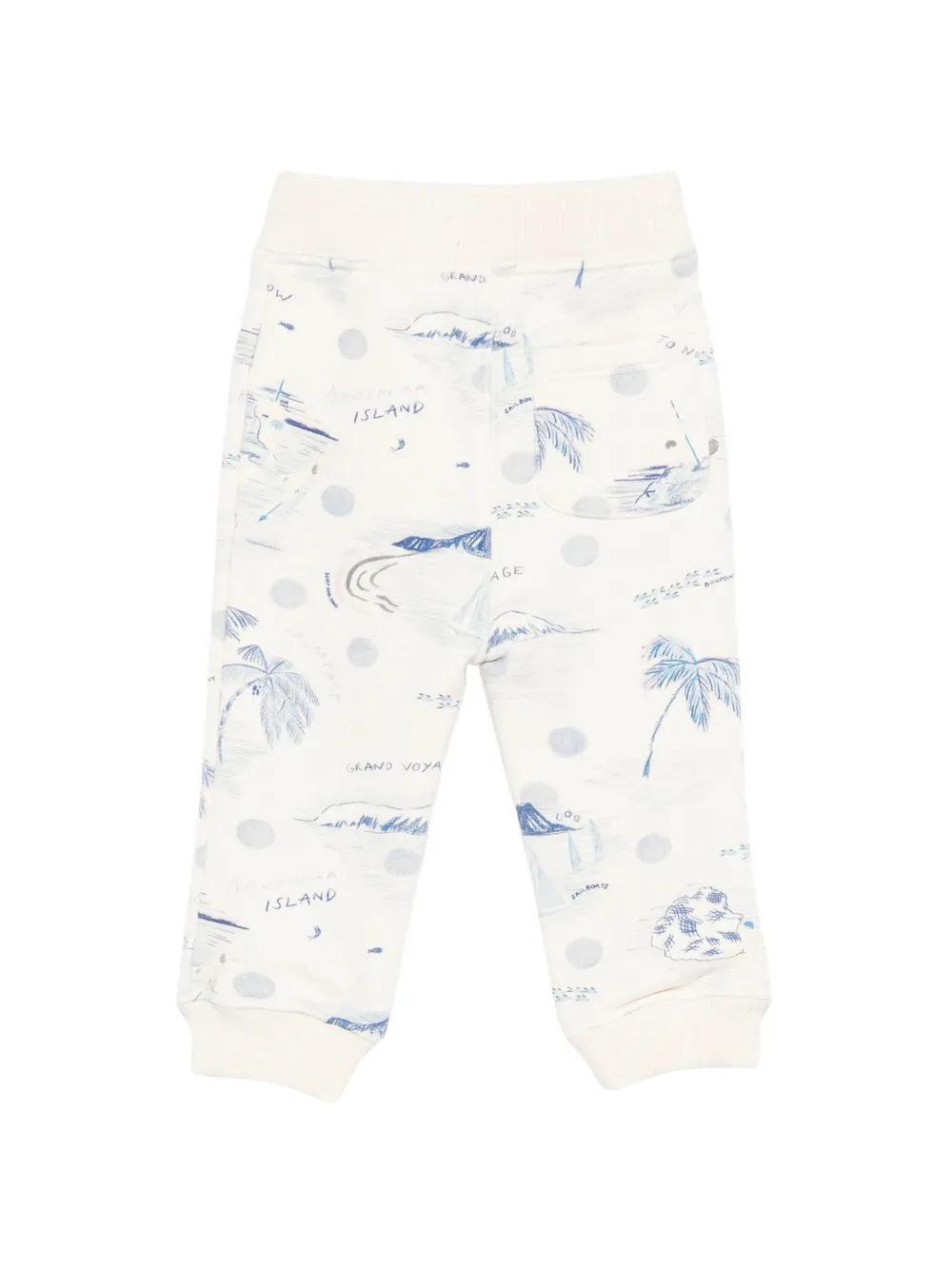Слоново-костный цвет, принт с пальмами, эластичный пояс, эластичные манжеты