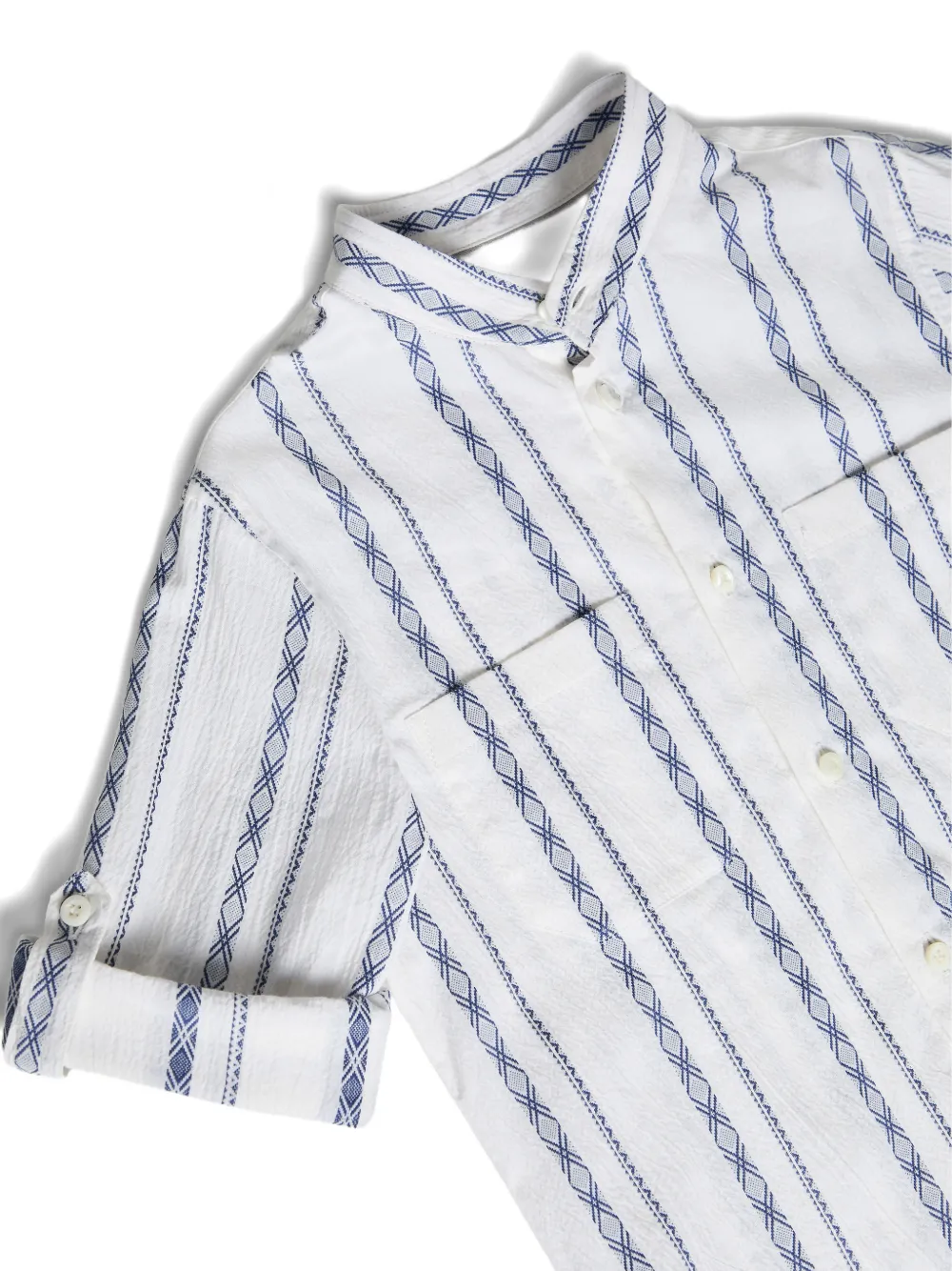 Полосатая рубашка с воротником-стойкой Brunello Cucinelli Kids, белый