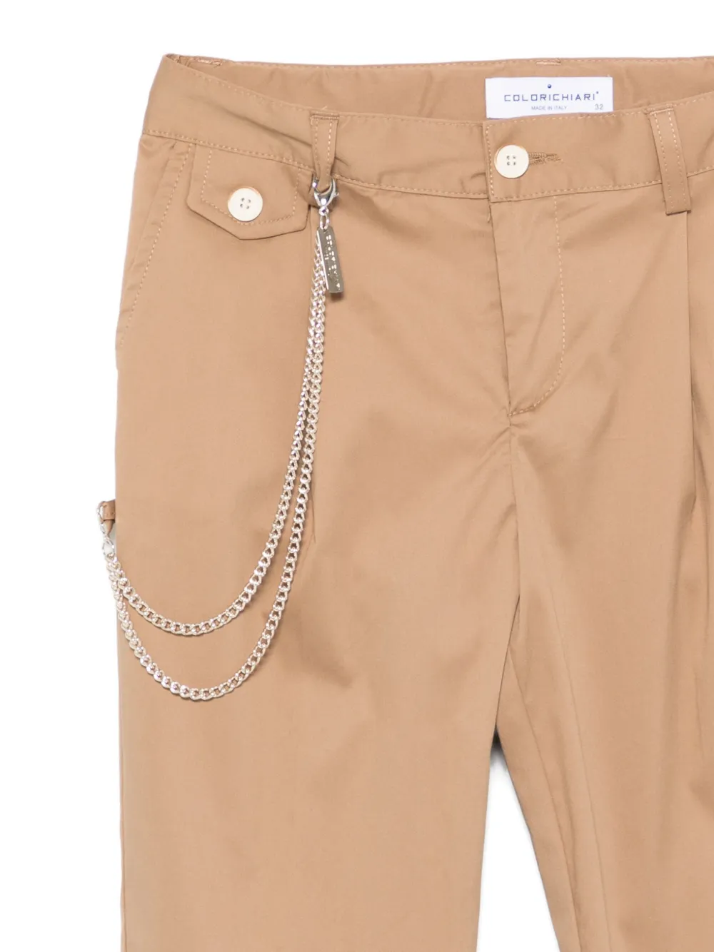 Комплект из пиджака, брюк, рубашки, платка для нагрудного кармана и галстука: пиджак с полосатым узором в бело-коричневых тонах, серебристой цепочкой, застежкой на пуговицы, нагрудным прорезным карманом и боковыми диагональными карманами