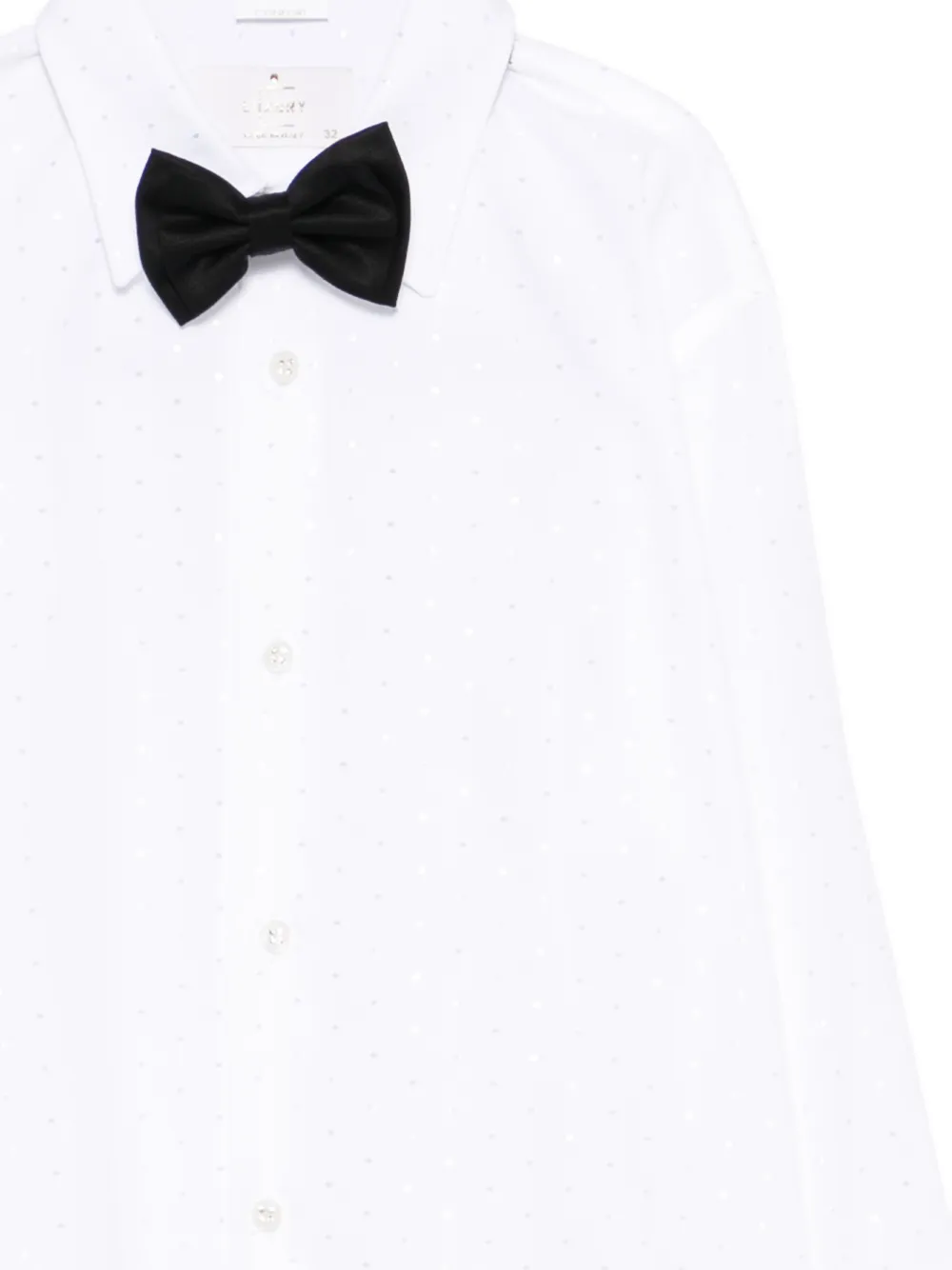 Черная рубашка в горох с остроконечным воротником, застежкой на пуговицы, длинными рукавами и подходящим галстуком-бабочкой