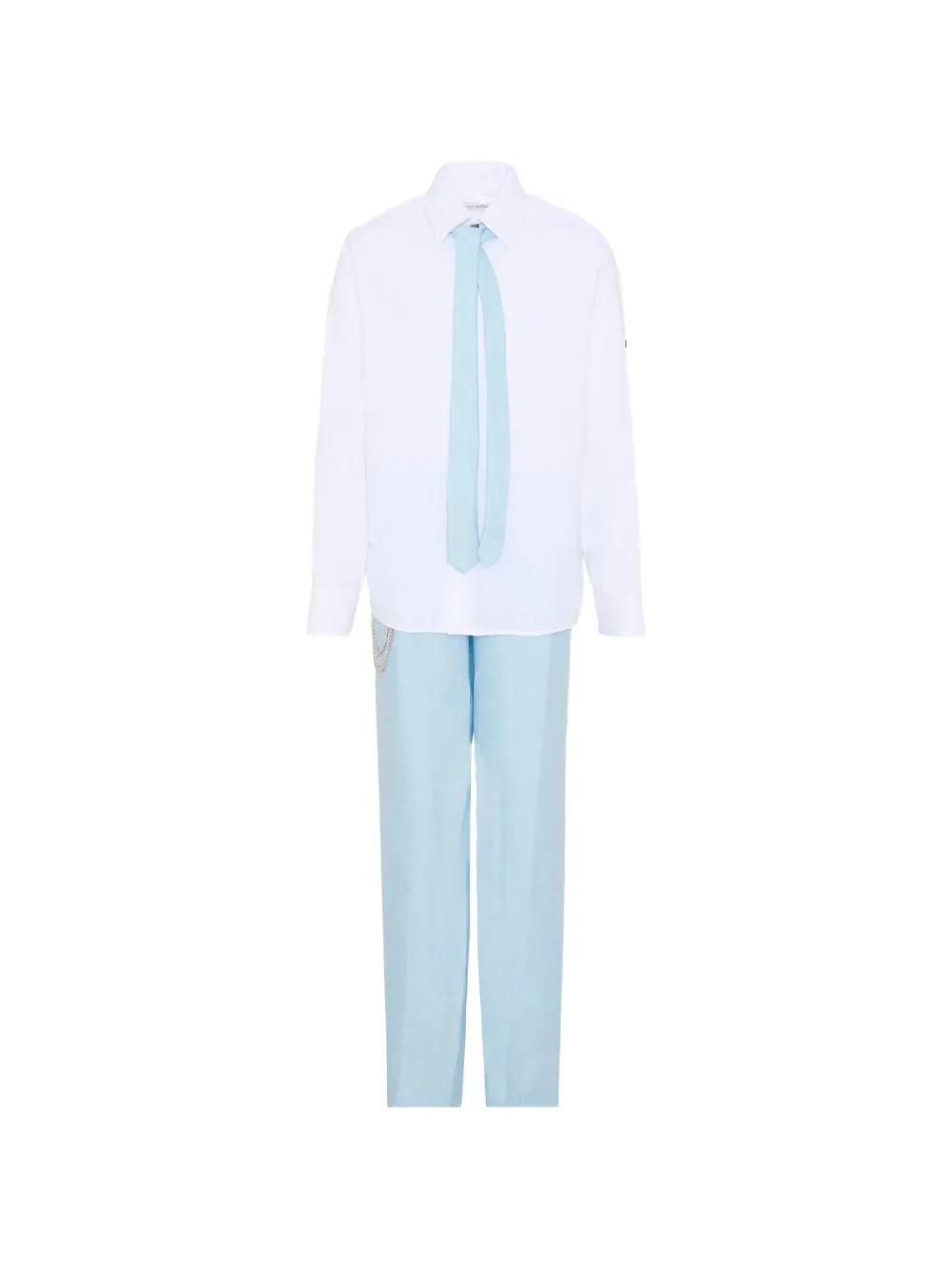 Светло-голубой, двубортный, застежка на пуговицы, цепочка-декор, накладные карманы с клапанами