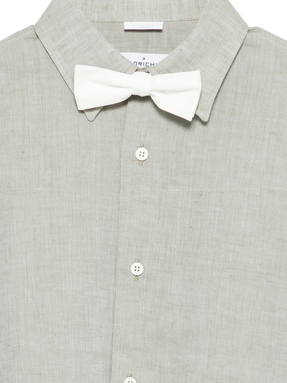 Белое золото-тоновые пуговицы, бантовый декор, цепочный декор, двубортная застежка, воротник