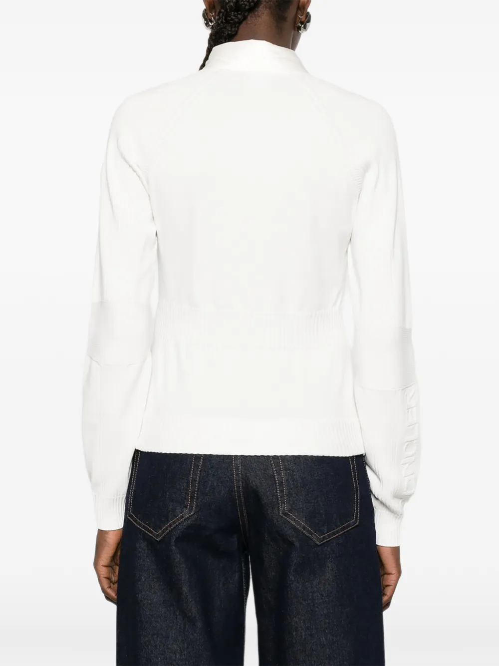 Белый цвет, панельный дизайн, застежка-молния спереди, карманы на молнии спереди, круглый вырез, длинные рукава