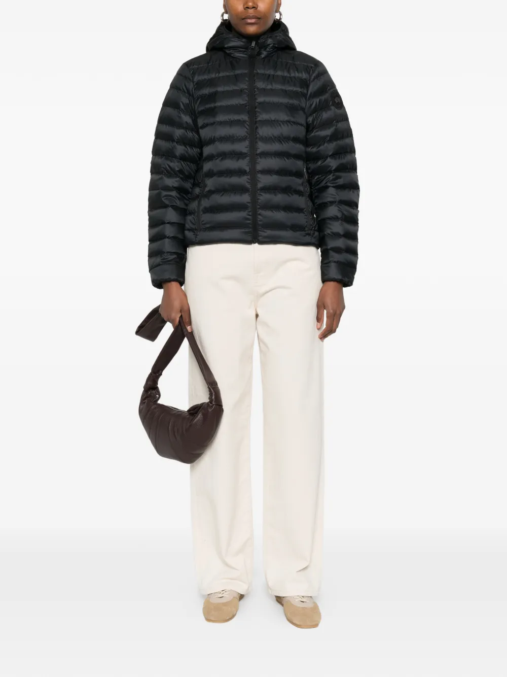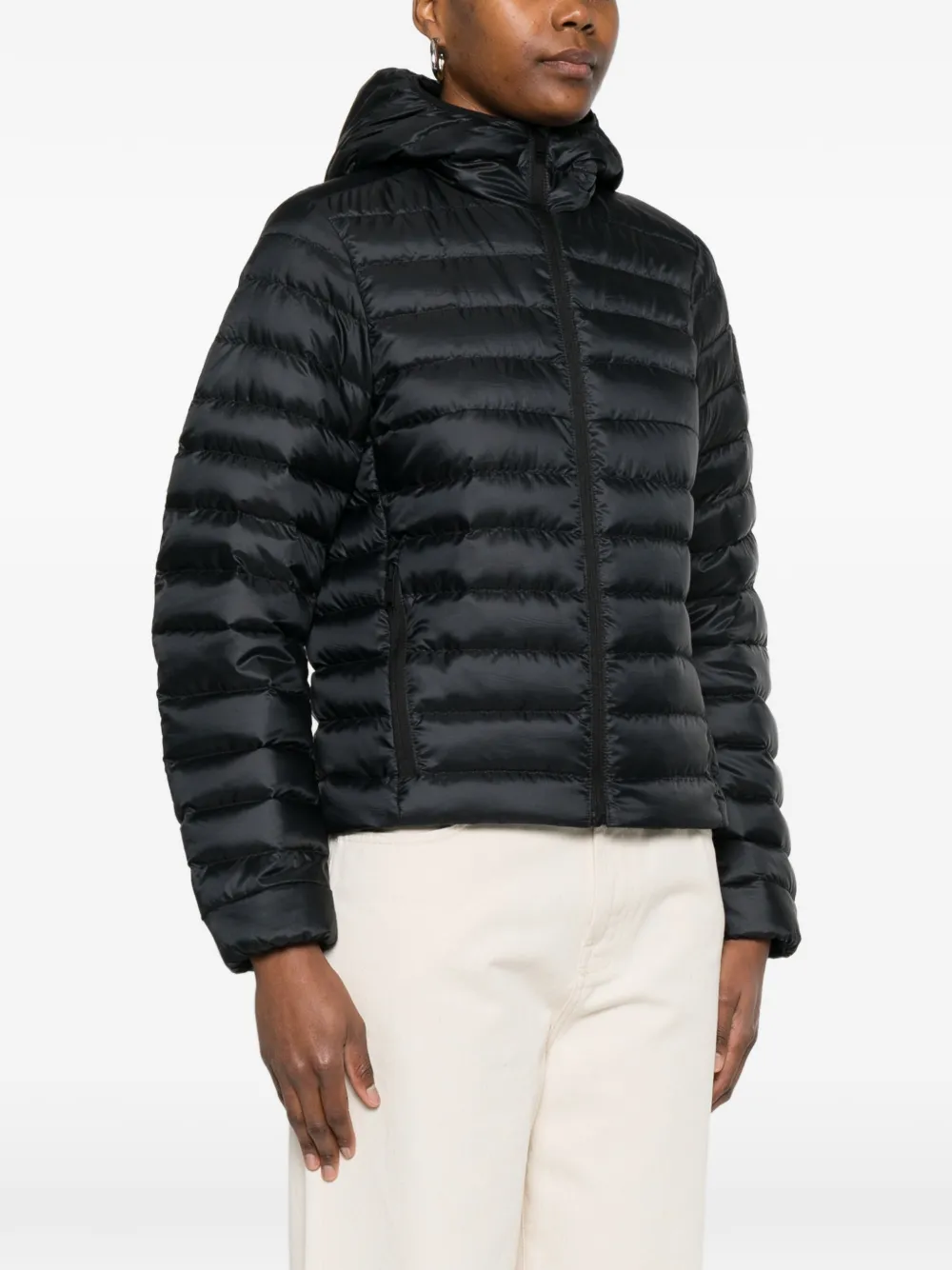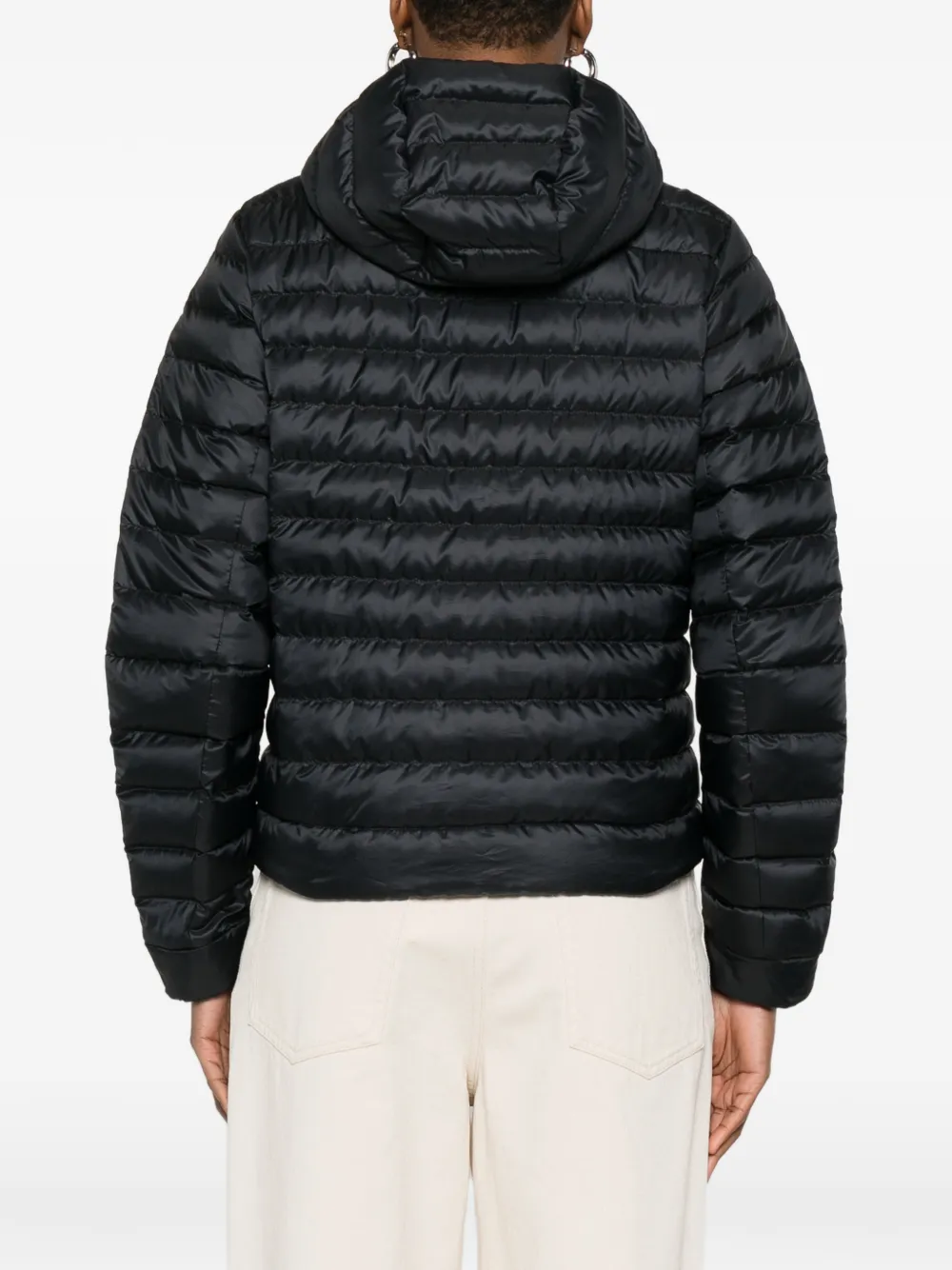 Черная стеганая куртка с капюшоном, застежкой-молнией спереди, нашивкой с логотипом и длинными рукавами