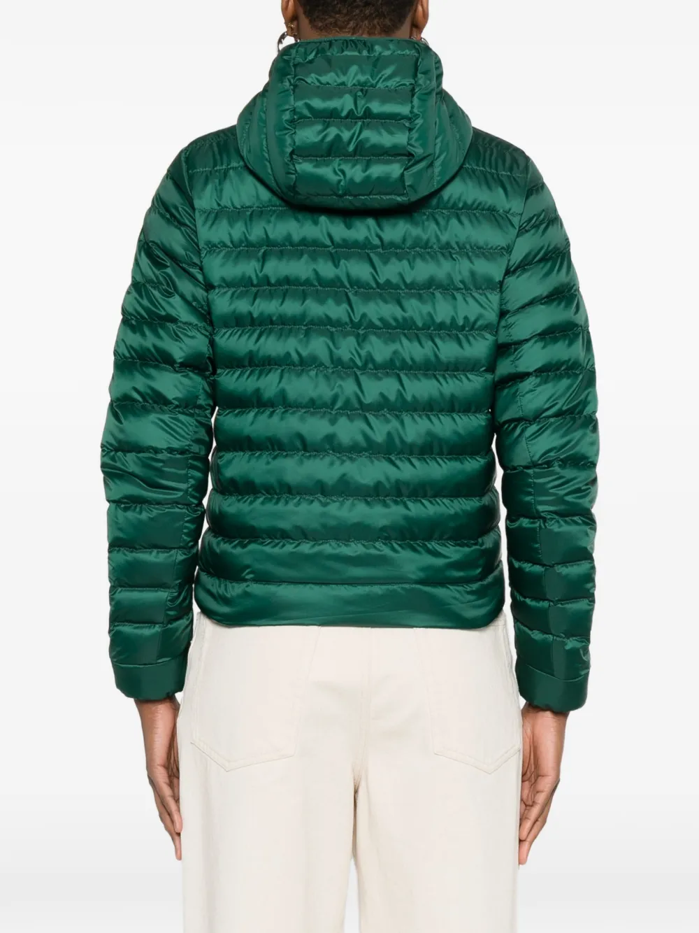 Зеленый цвет, стеганый дизайн, застежка-молния, капюшон, карманы на молнии, нашивка с логотипом