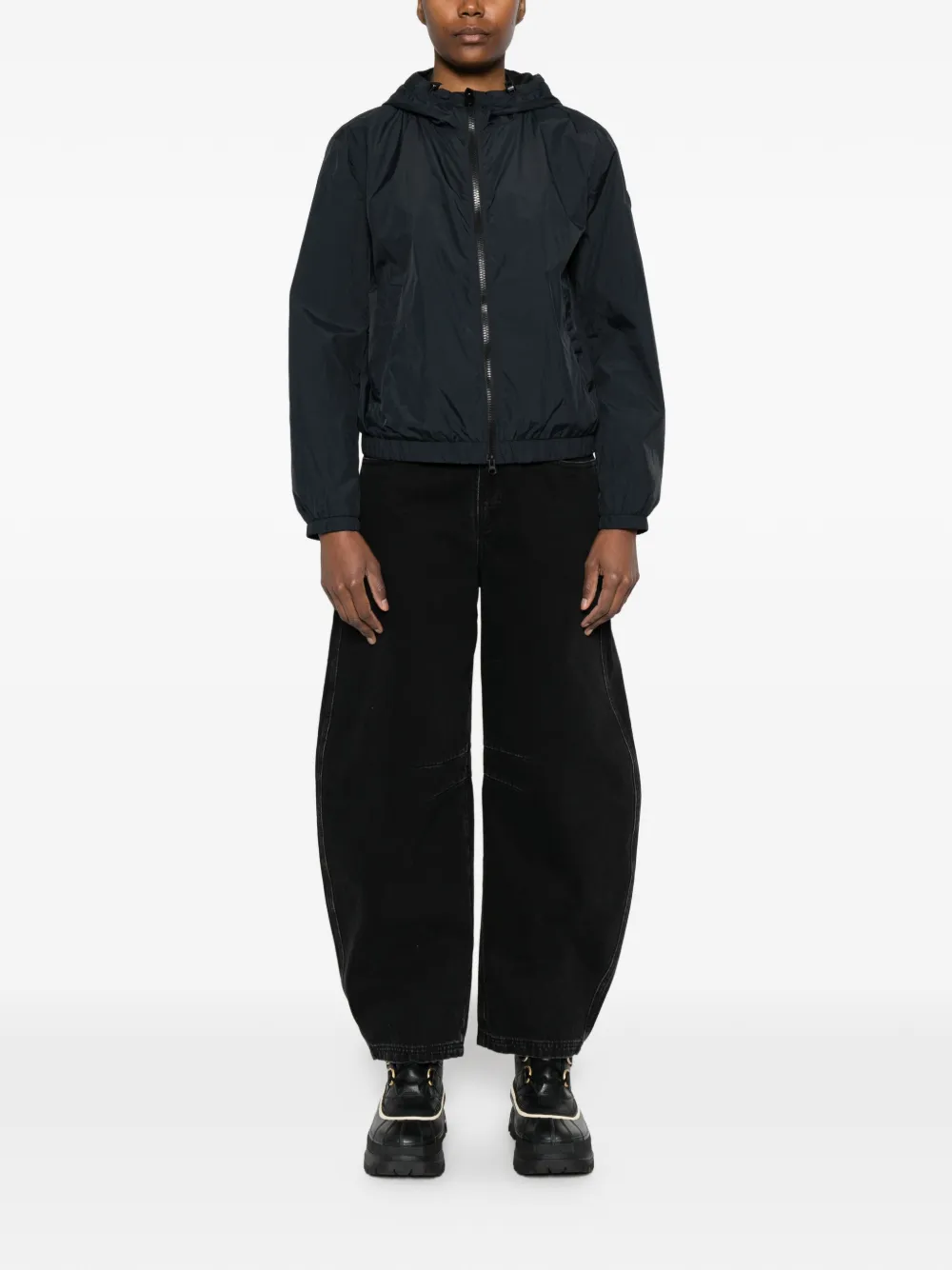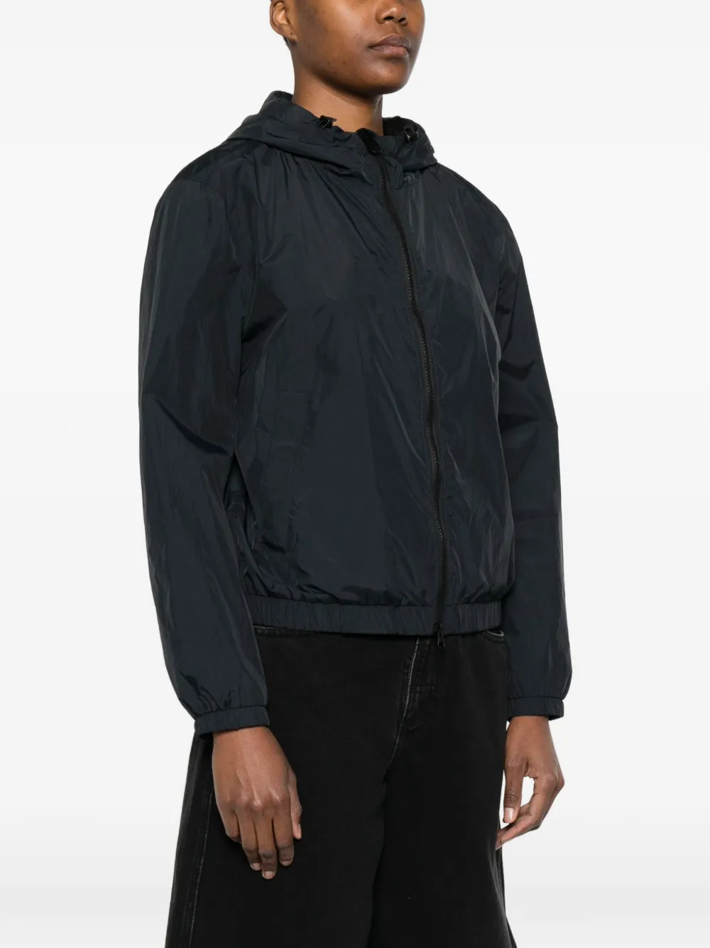 Темно-синий, застежка-молния, эластичный низ, длинные рукава, с капюшоном