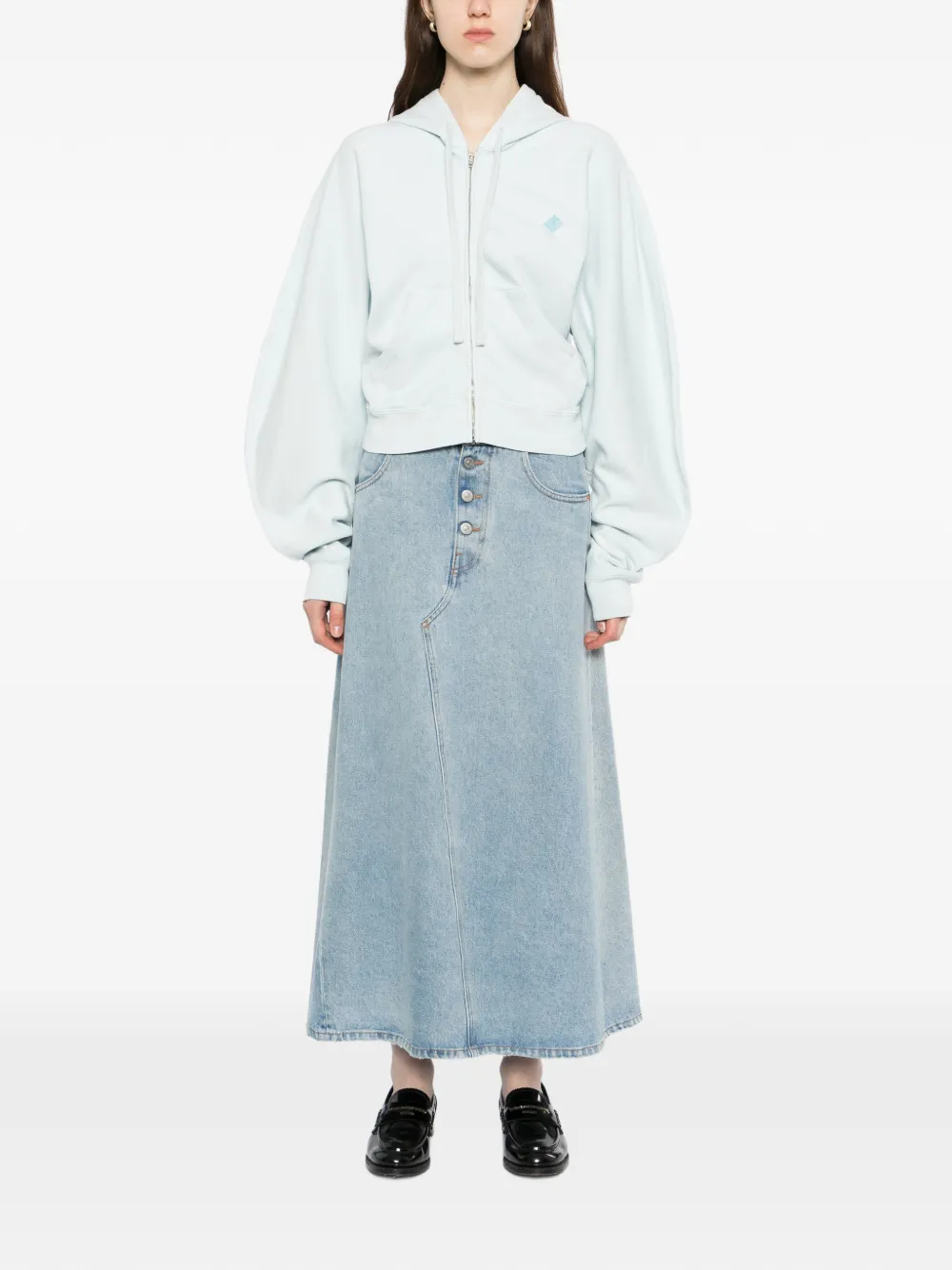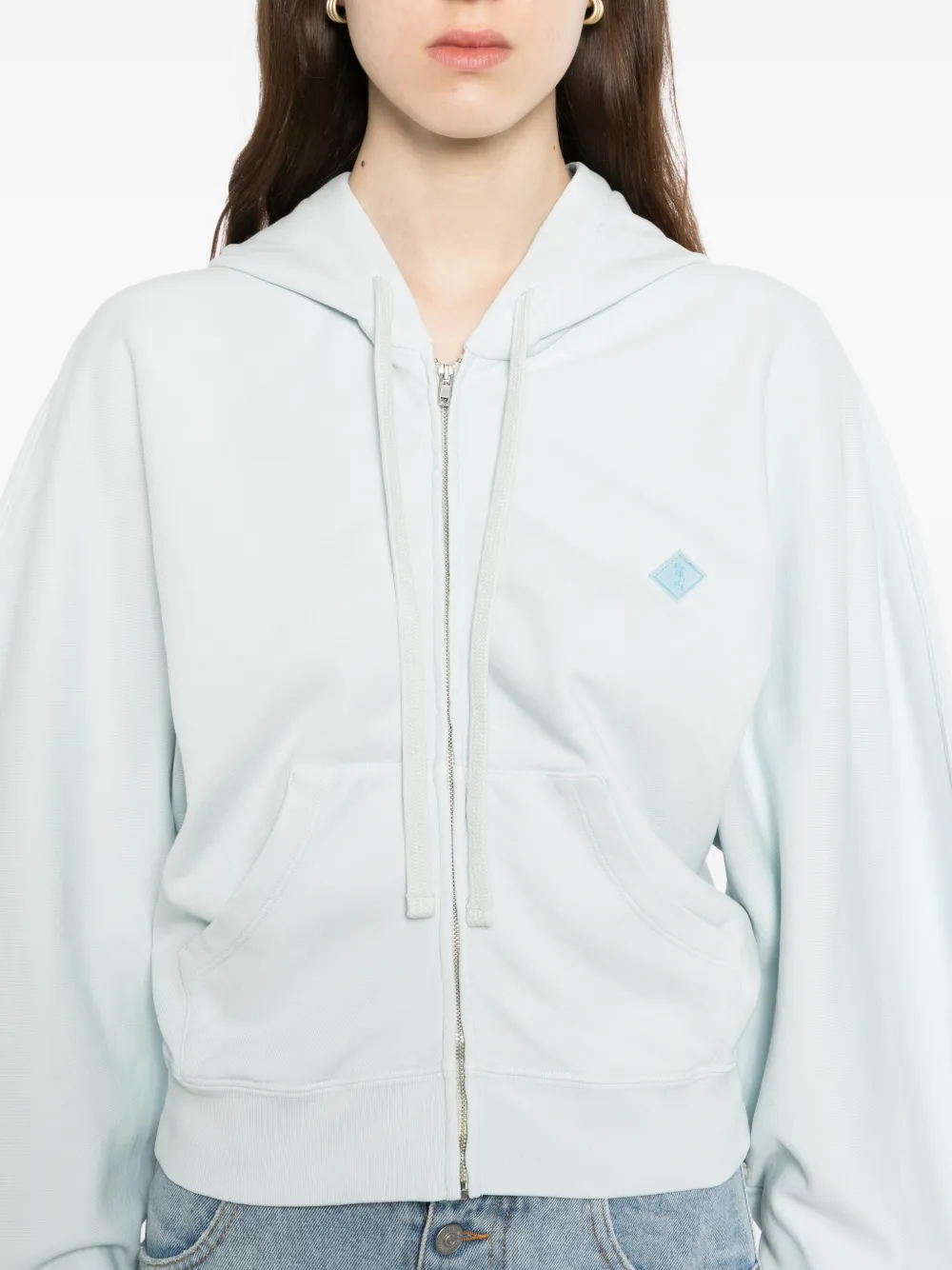 Небесно-голубой, застежка-молния спереди, два боковых прорезных кармана
