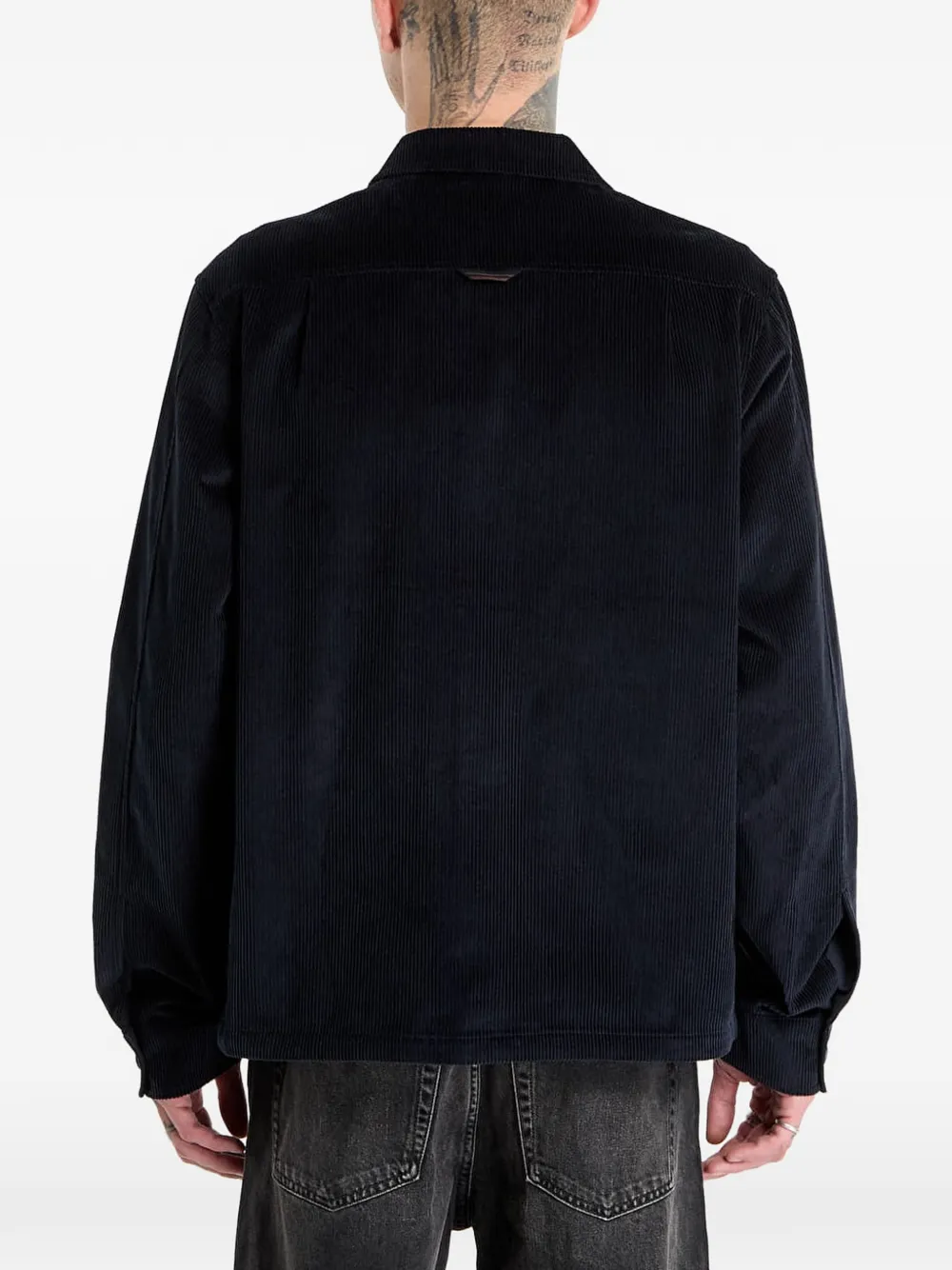 Голубая вельветовая рубашка с нагрудным карманом, длинными рукавами, застежкой на пуговицы и классическим воротником