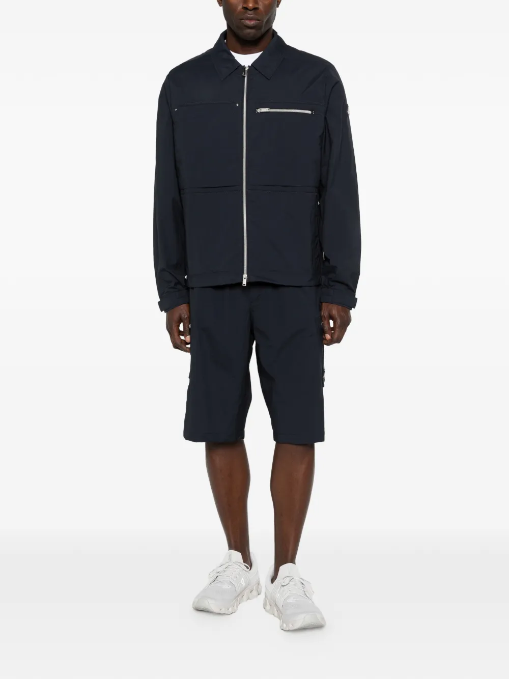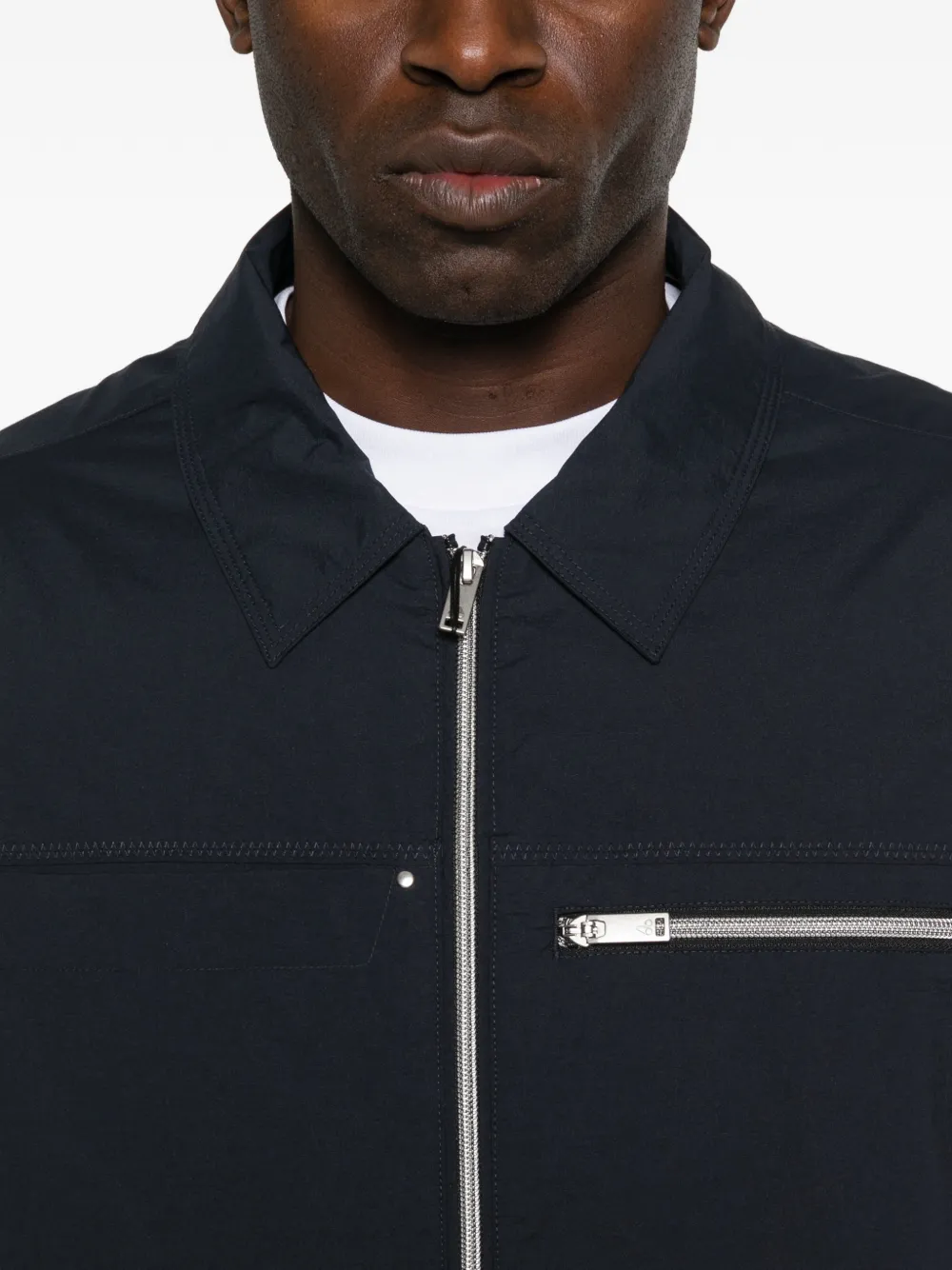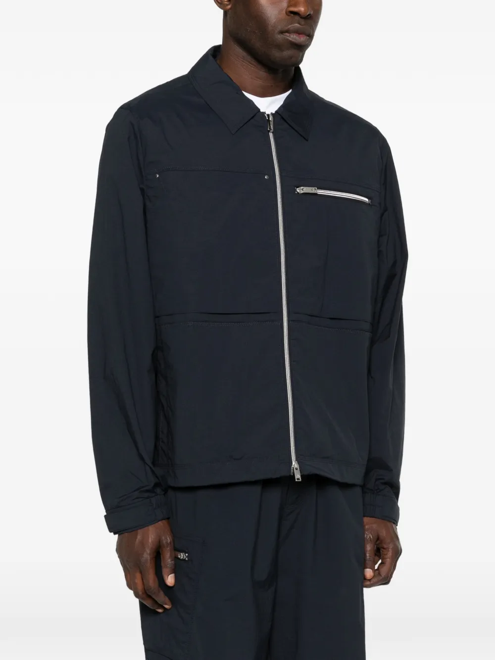 Темно-синий, нагрудные карманы, застежка-молния спереди, классический воротник, длинные рукава