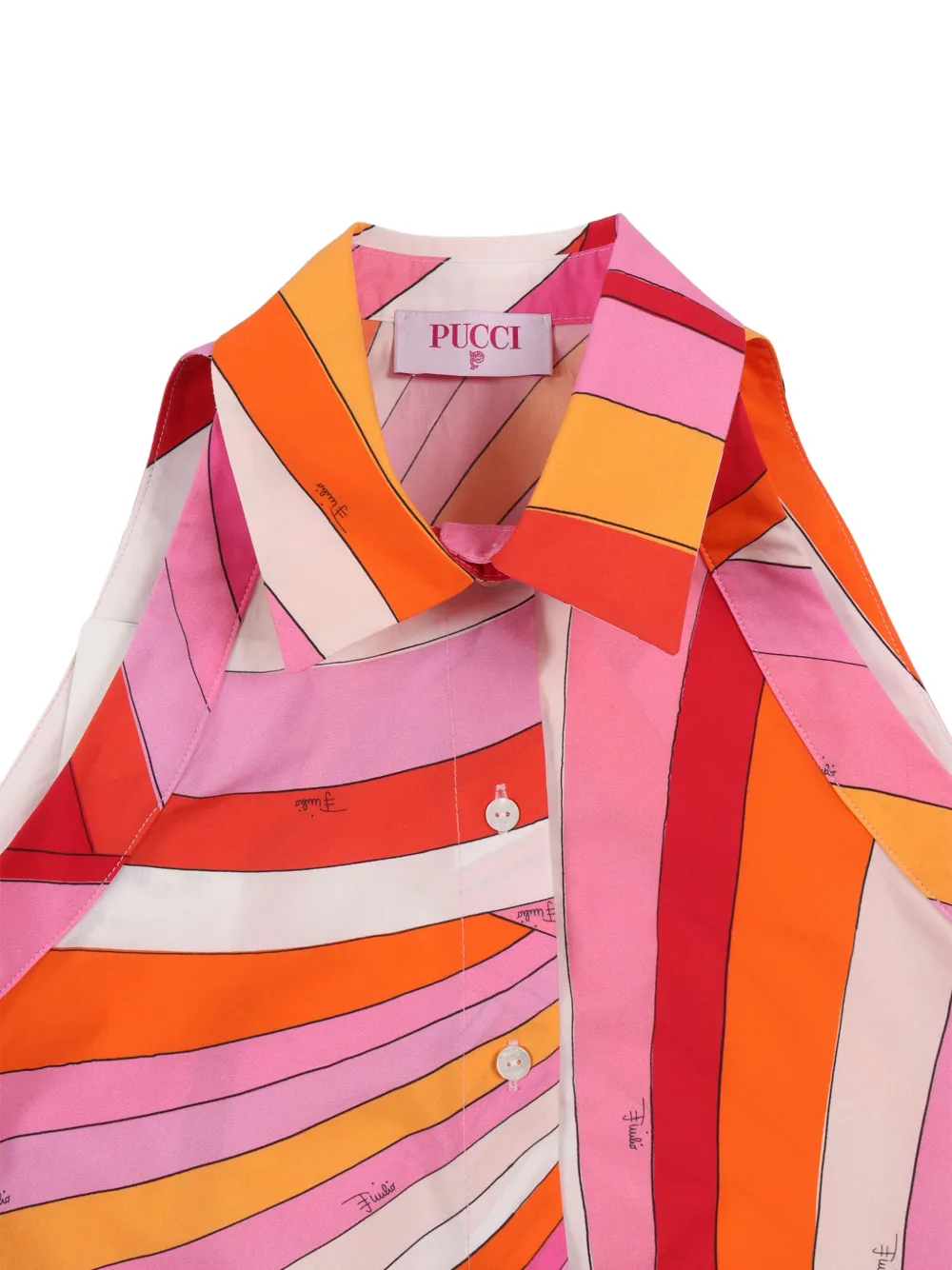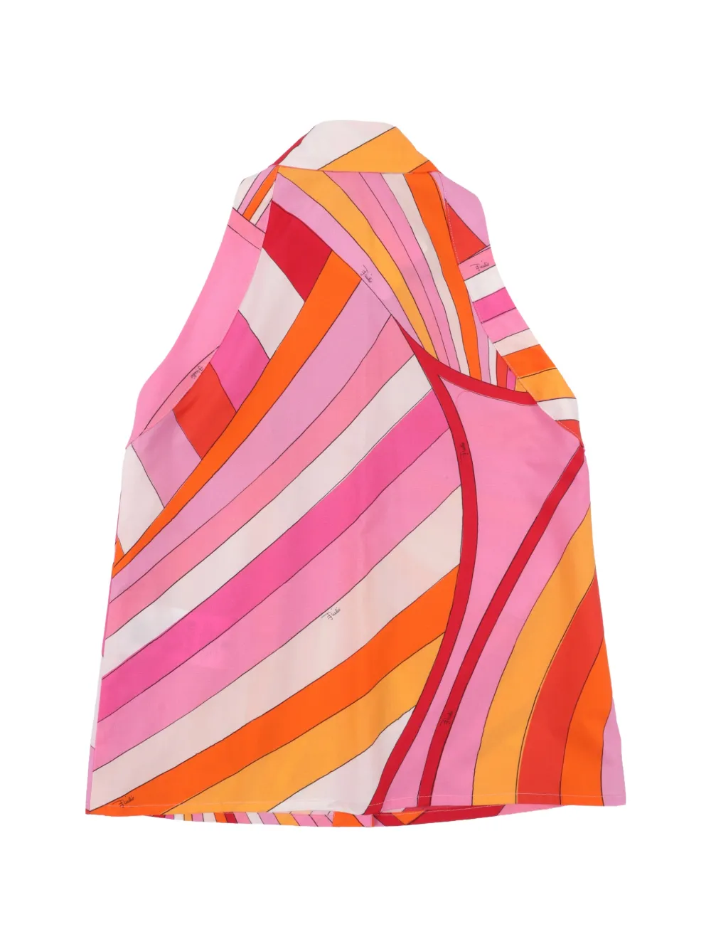 Розовая/оранжевая хлопковая безрукавка с принтом Marmo, застежкой на пуговицы и заостренным воротником