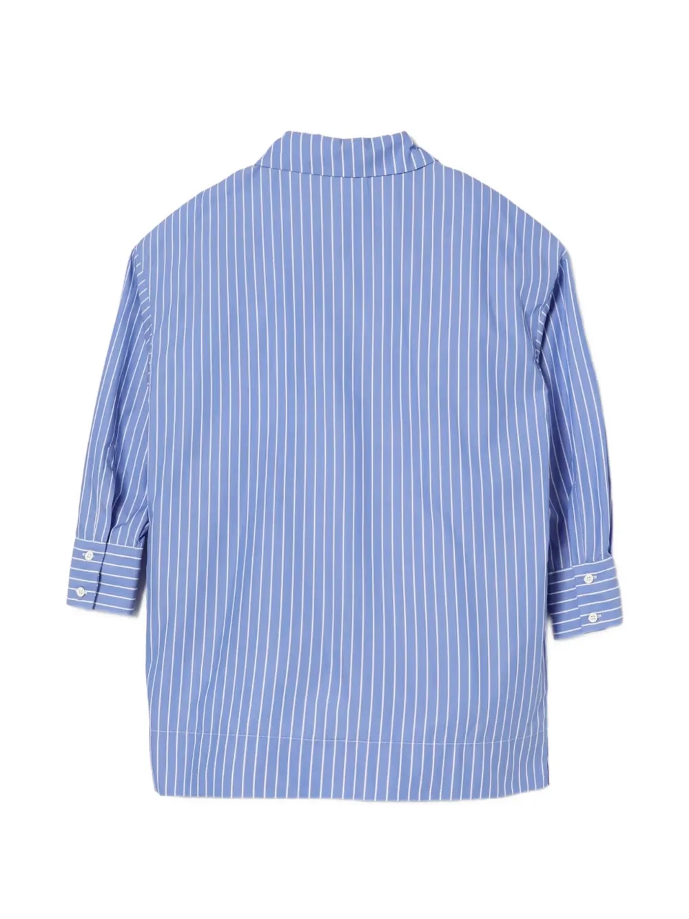 Синий и белый полосатый узор, застежка на пуговицы, длинные рукава, классический воротник