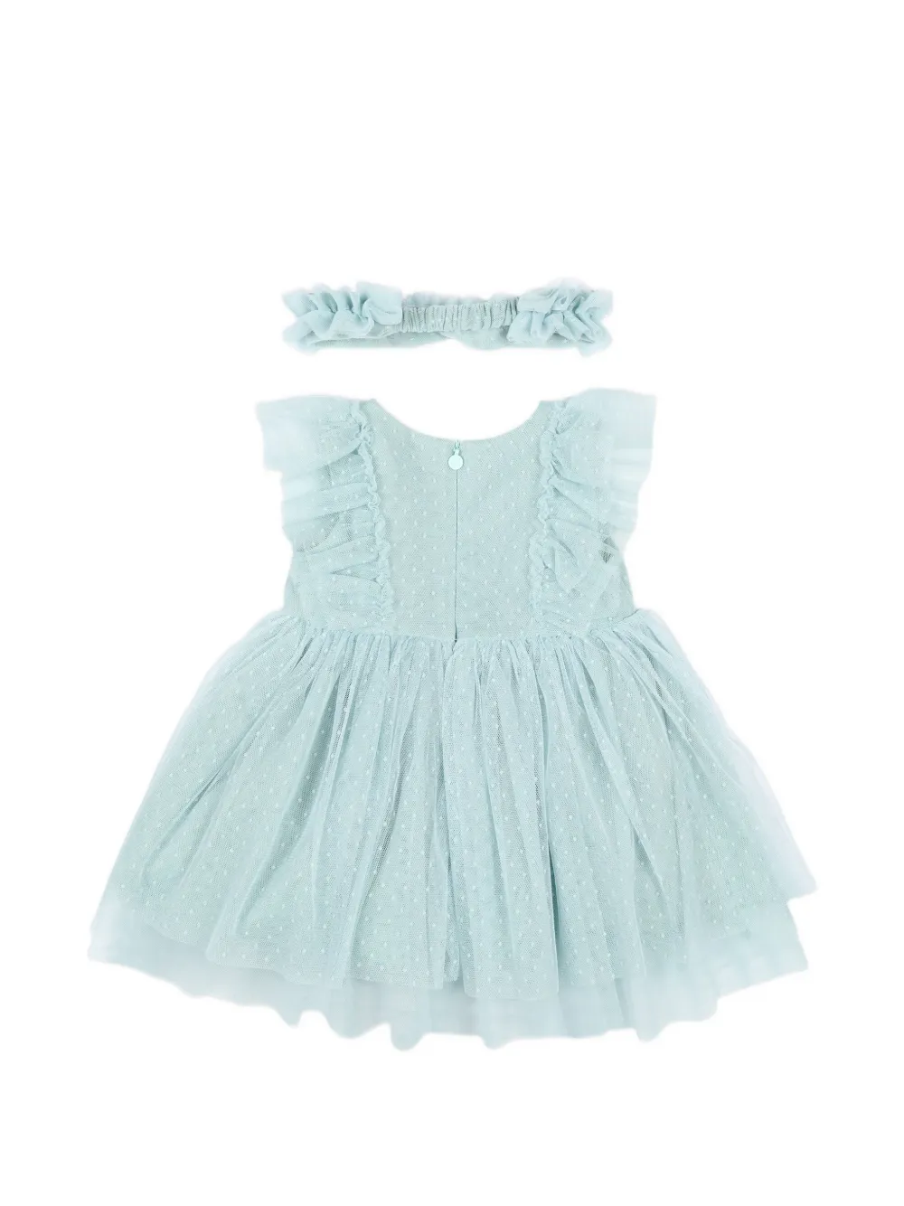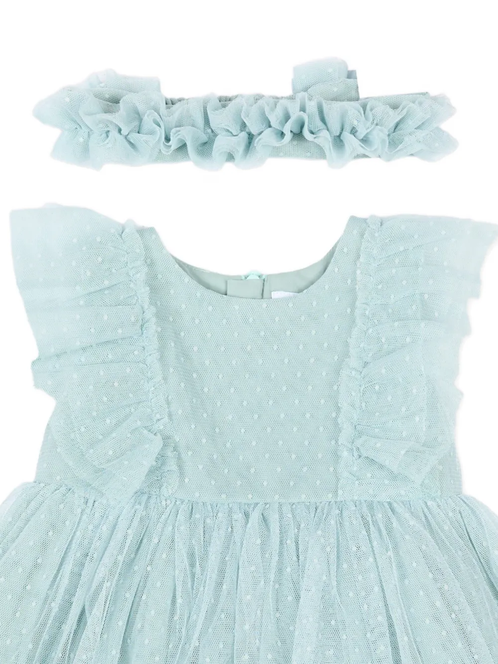 Зеленая повязка с точечным узором и оборками, платье без рукавов с многослойной юбкой