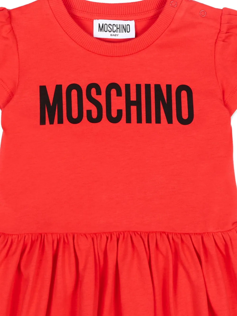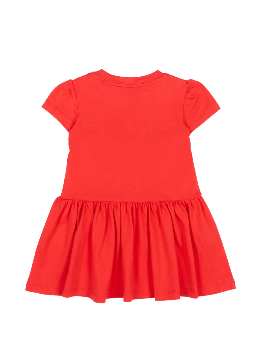Красная футболка с логотипом, круглый вырез, короткие рукава, оборки, хлопок