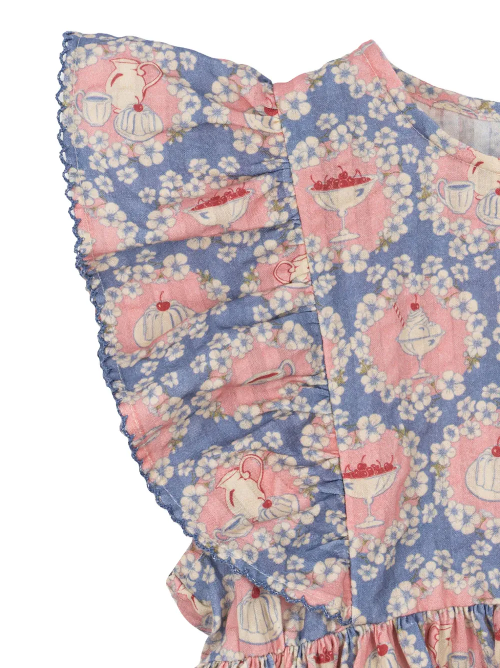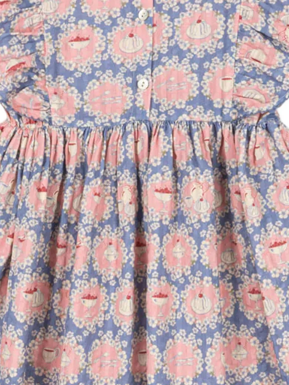 Розовый и голубой принт, рукава с оборками, застежка на пуговицы, хлопок
