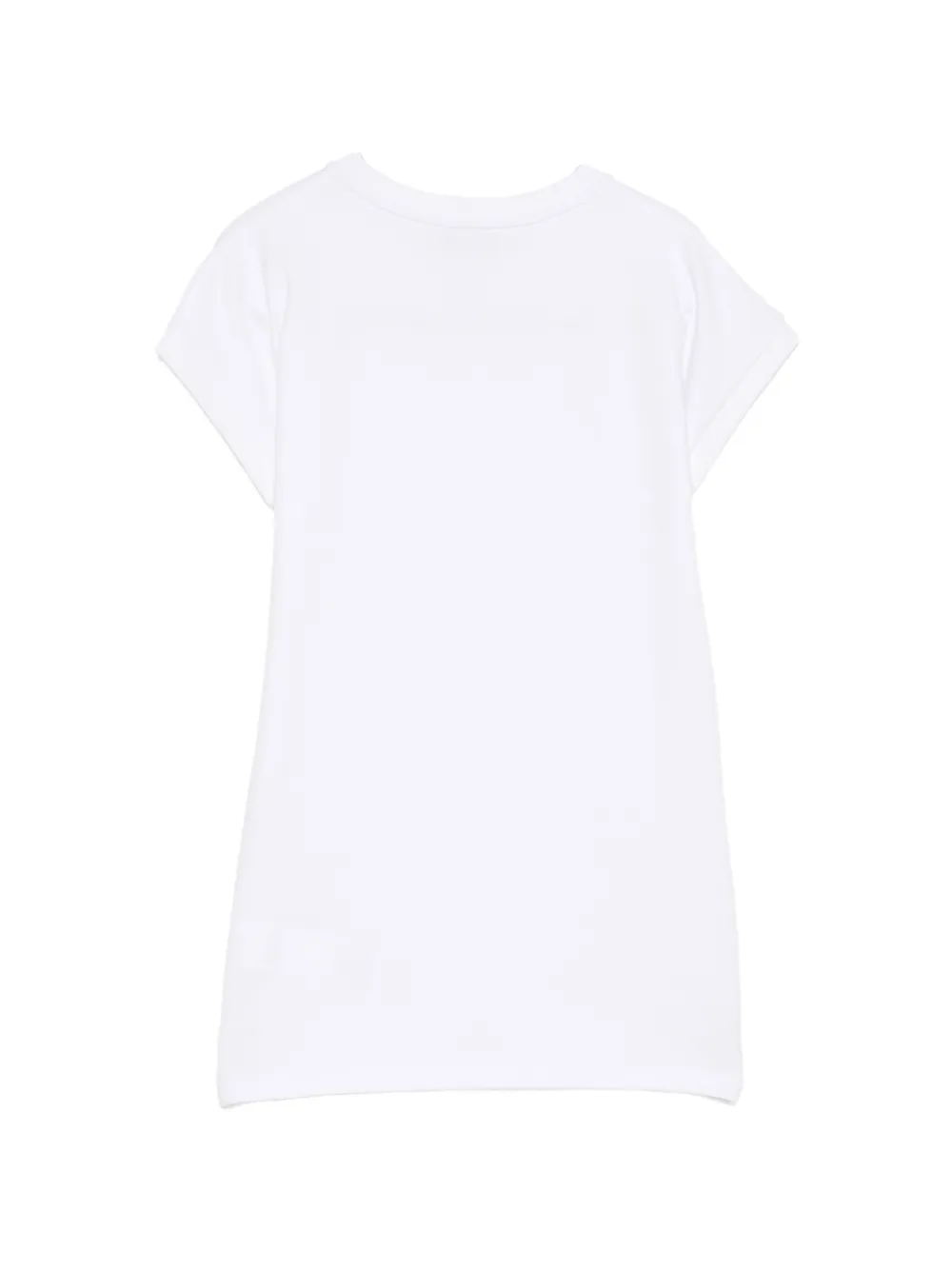 Белая футболка с короткими рукавами, круглым вырезом и украшениями
