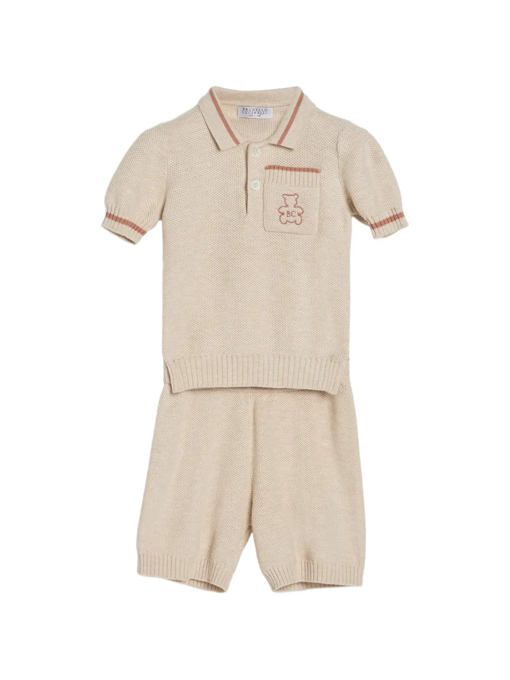 Знаменитый медвежонок Берни сопровождает первые месяцы и ранние приключения малыша, украшая одежду линии Newborn, разработанную для детей от 0 до 36 месяцев. Этот свитер-поло выполнен из мягкого хлопкового трикотажа с фактурой «соты», который обеспечивает приятную и дышащую текстуру. Классический воротник на пуговицах и нагрудный карман, украшенный вышивкой с изображением медвежонка Берни, добавляют изысканные и отличительные детали. Рукава дополнены окантовкой деликатного контрастного цвета для нежного акцента. Бежевые ребристые манжеты. Вашу покупку доставят в подарочной коробке. В соответствии с философией компании, все изделия из детской коллекции изготавливаются с особым вниманием к выбору материалов и деталей.