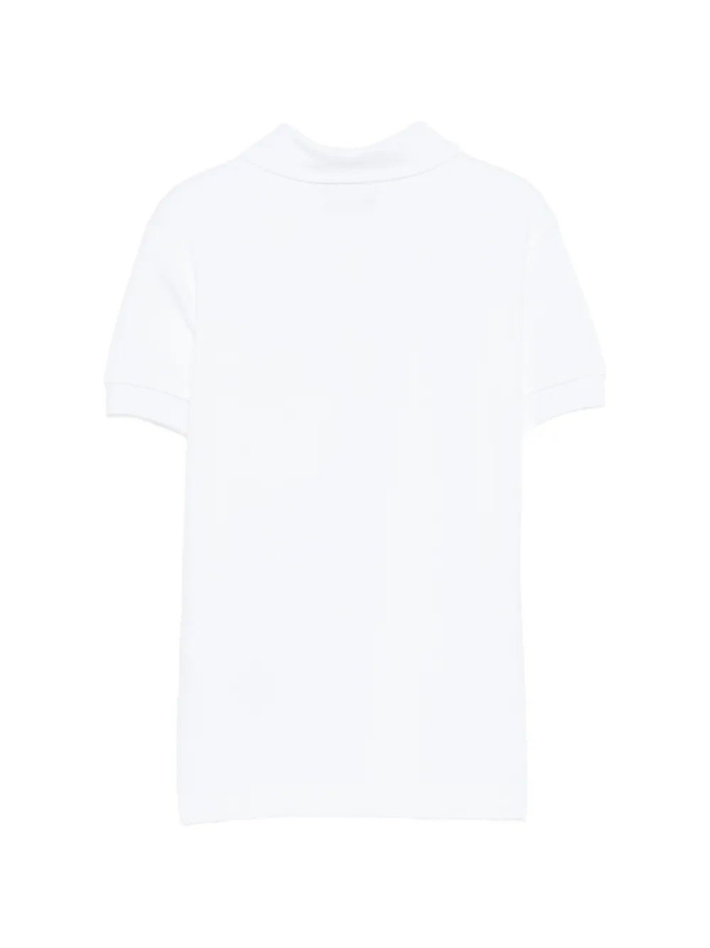 Белое поло с короткими рукавами, нагрудным карманом и нашивкой с логотипом, воротником и застежкой на пуговицы