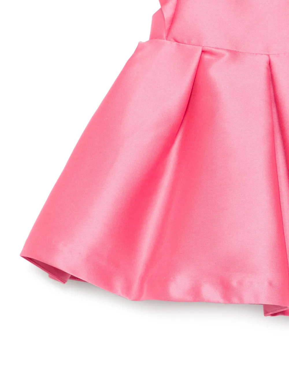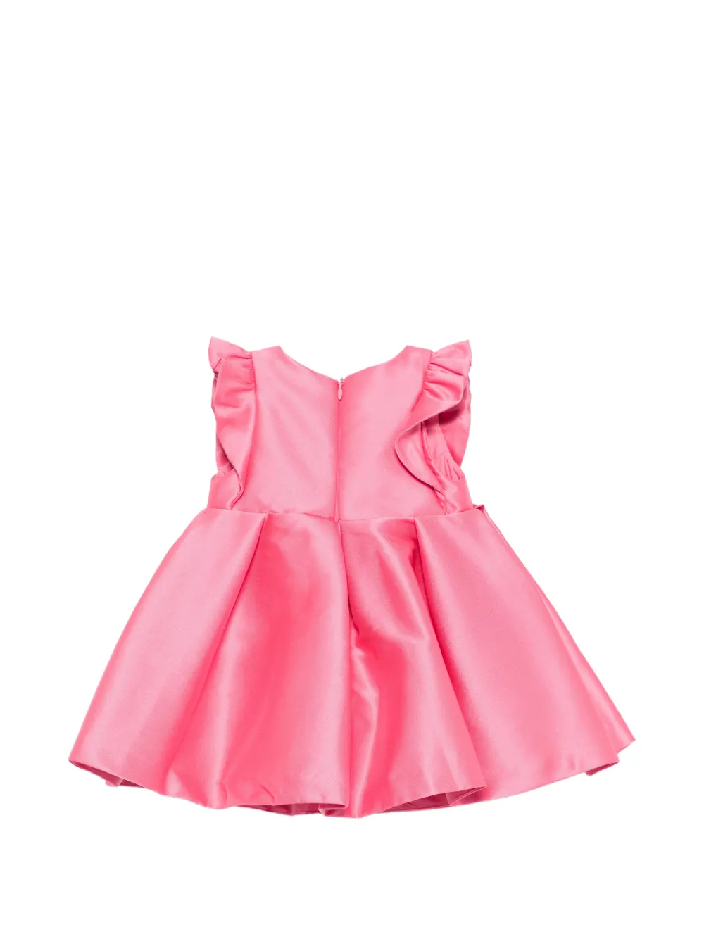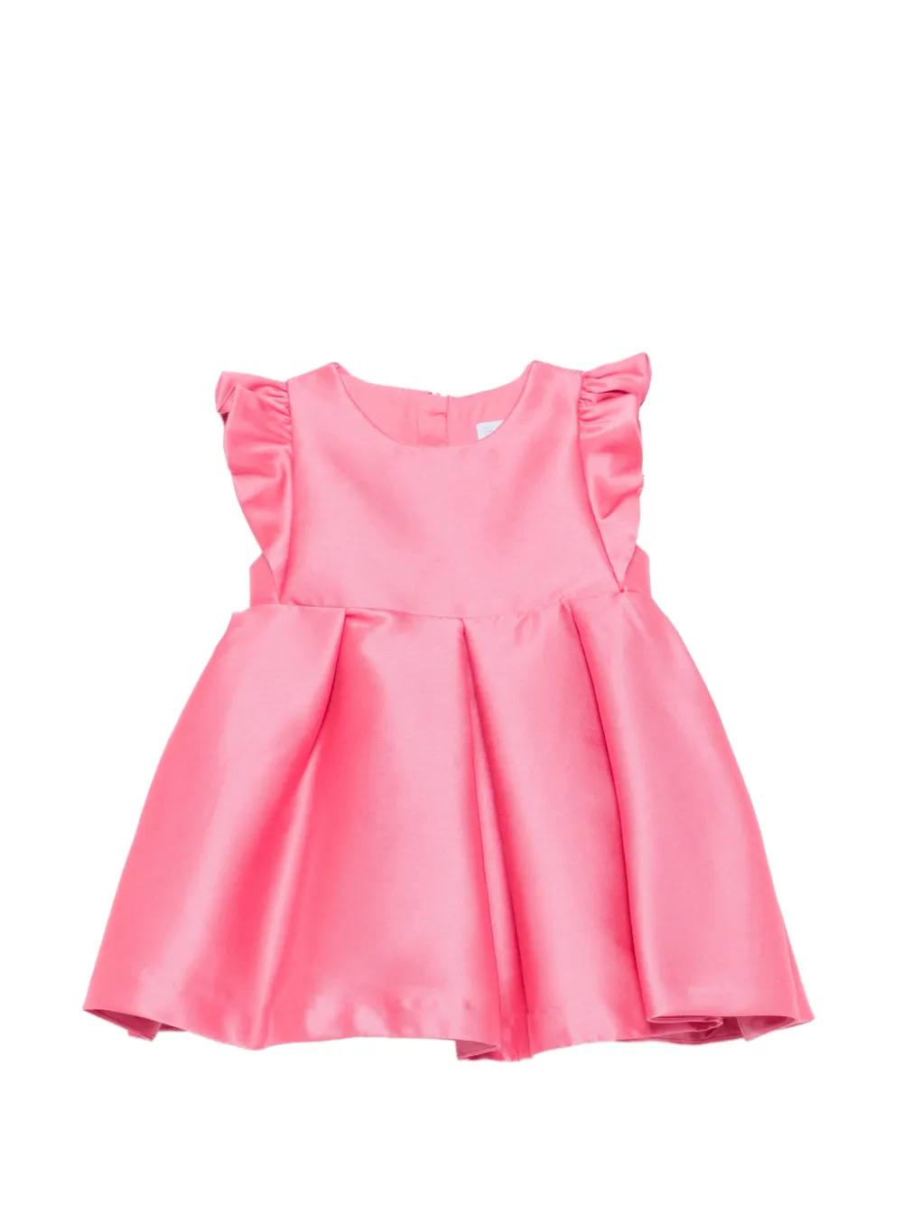 Розовое платье с круглым вырезом, короткими рукавами, застежкой-молнией, плиссированной юбкой и оборками на плечах
