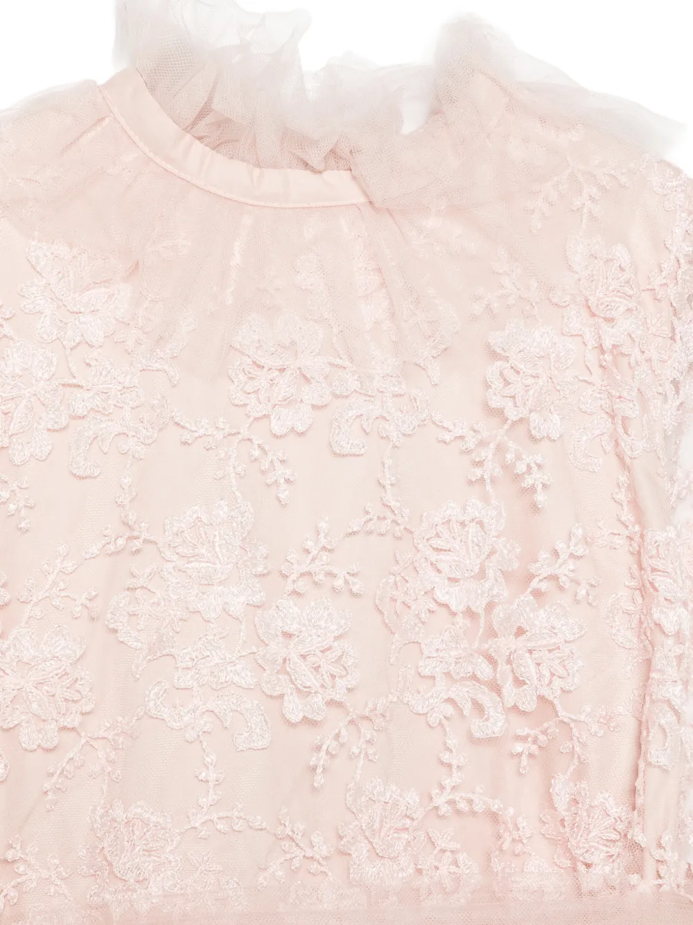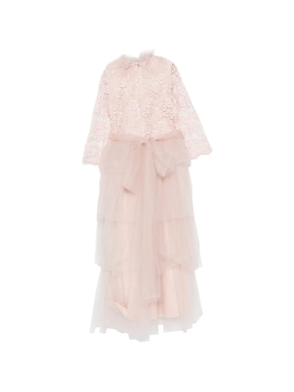 Розовая юбка с цветочным кружевом, оборчатым воротником, многослойным дизайном и завязкой на спине