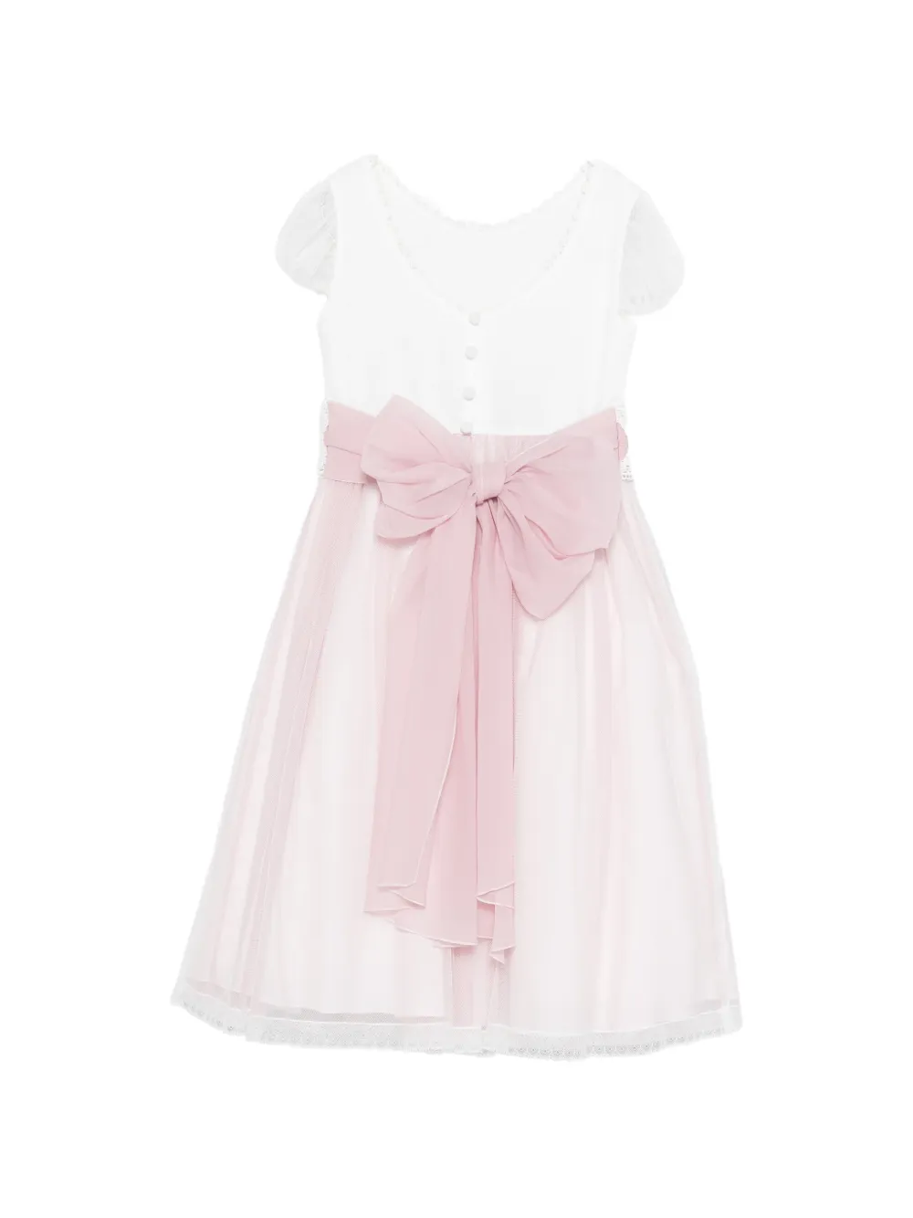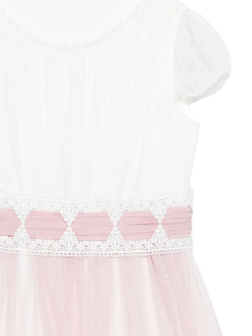 Розовая юбка из тюля с кружевной отделкой и короткими рукавами