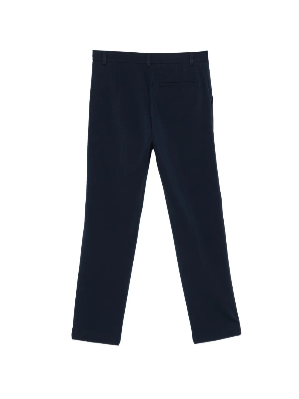 Синие прямые брюки с застежкой на пуговицы, шлевками для ремня и прорезными карманами