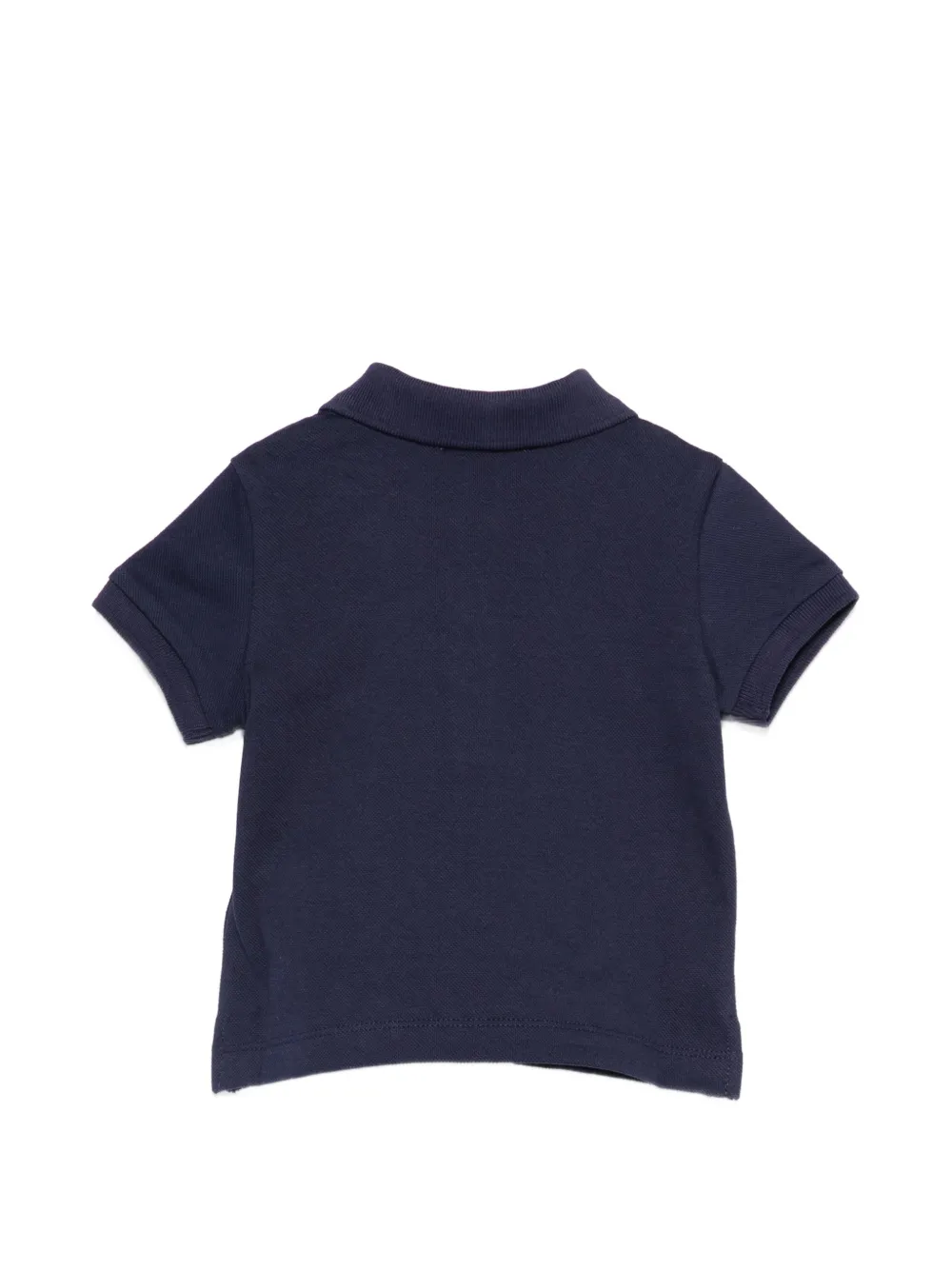 Синее поло с принтом-логотипом, застежкой на пуговицы, короткими рукавами и воротником поло
