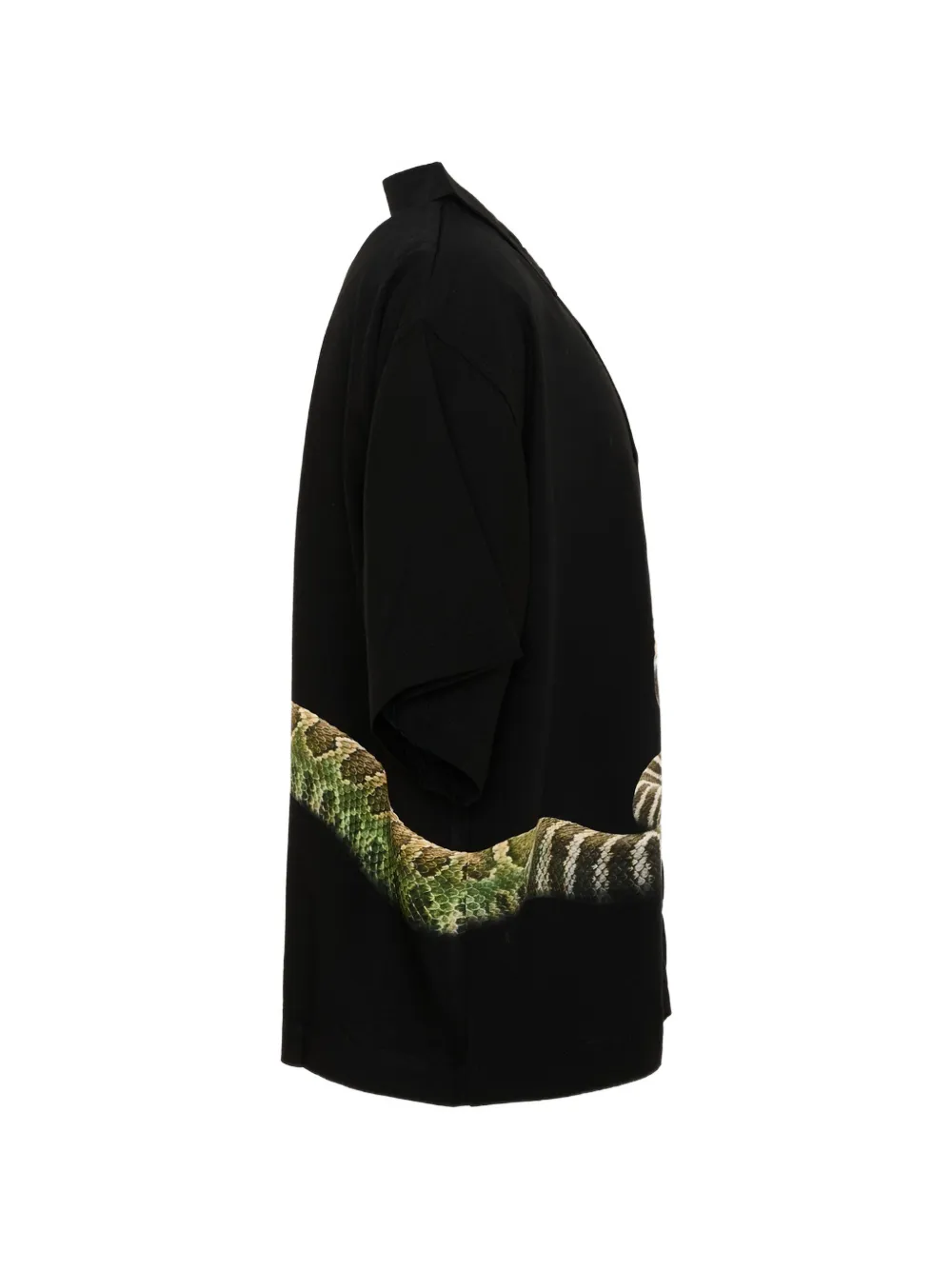 Черная рубашка с принтом под змеиную кожу, короткими рукавами, застежкой на пуговицы и классическим воротником