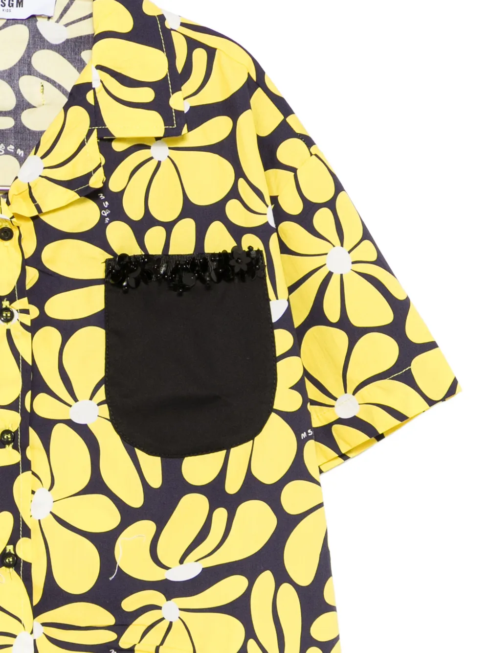 Желтая и черная рубашка с цветочным принтом, накладным карманом на груди, отделкой по краю, короткими рукавами и застежкой на пуговицы